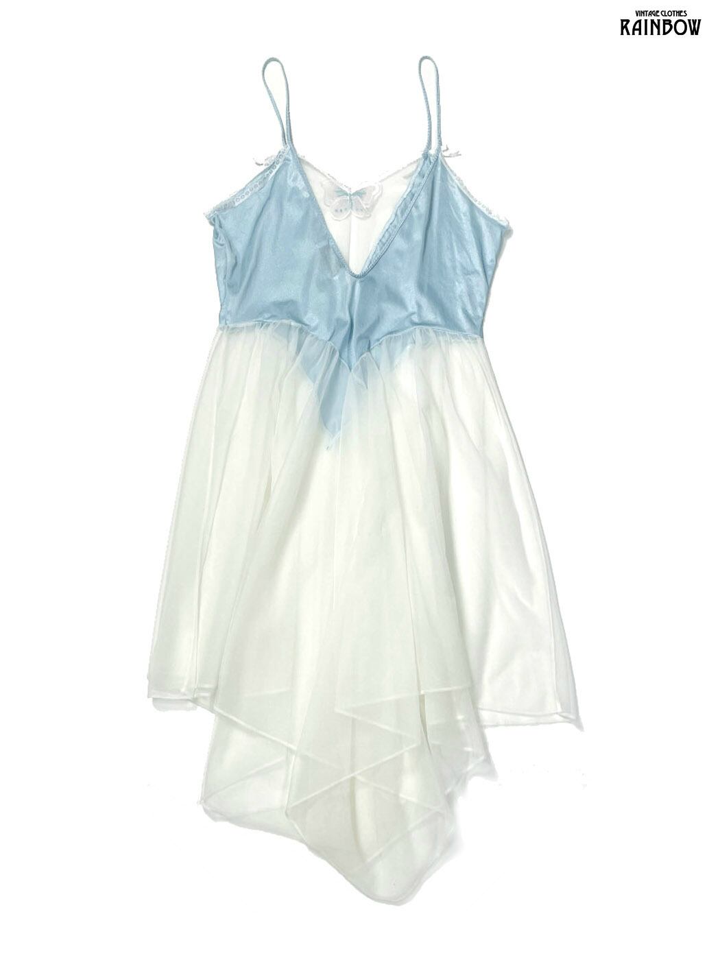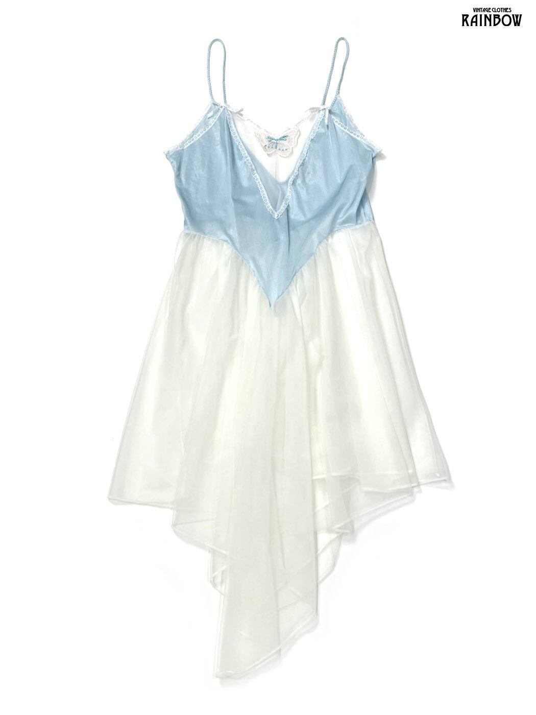 #ワンピース #キャミソール #膝丈 #ウエスト切り替え #白 #水色 #無地 #アメリカ製 #刺繍 #レース #ガーリー #シフォン #シフォンワンピース
