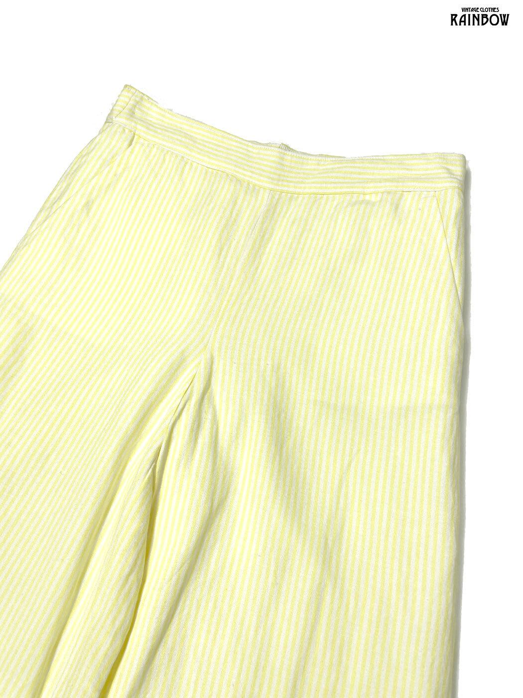 古着 ストライプ柄 コットン ロング丈 パンツ 黄 (btu2604013)
