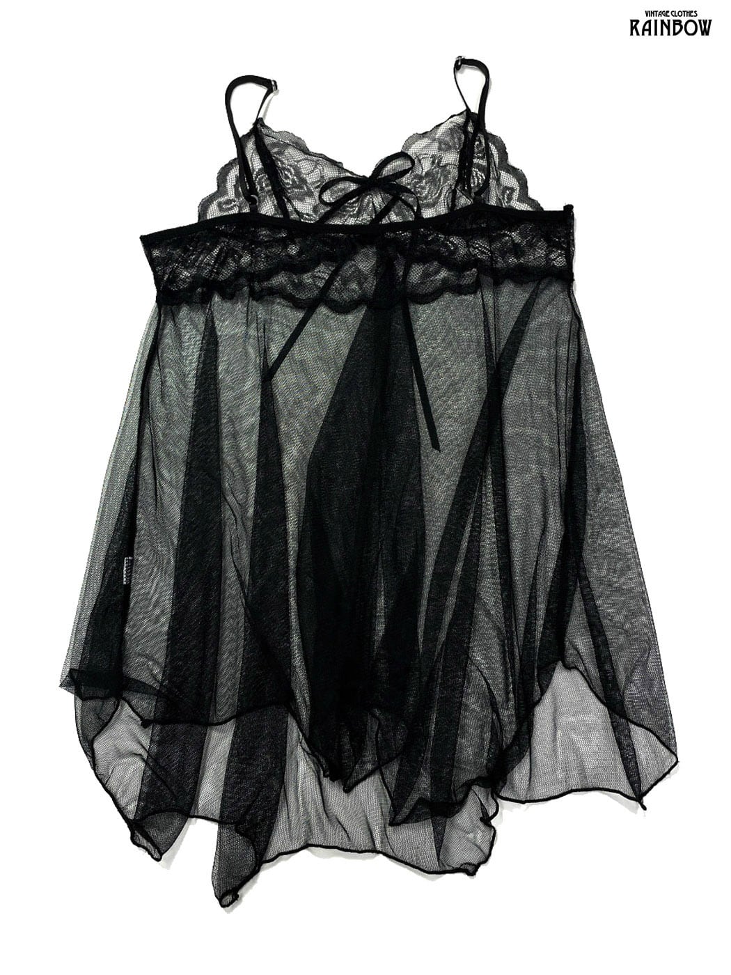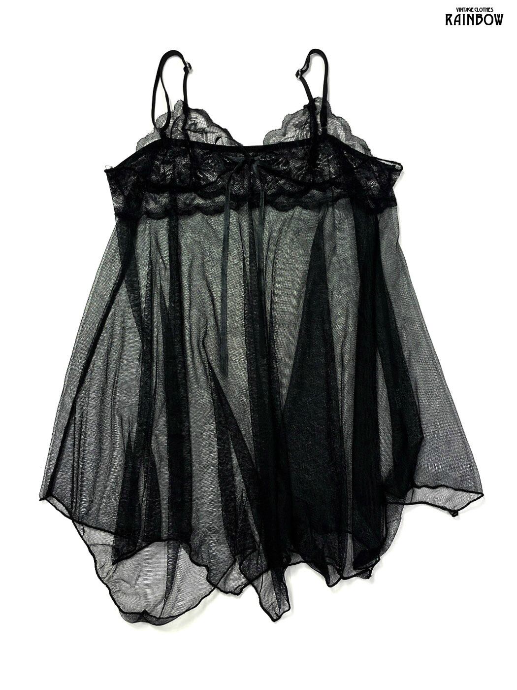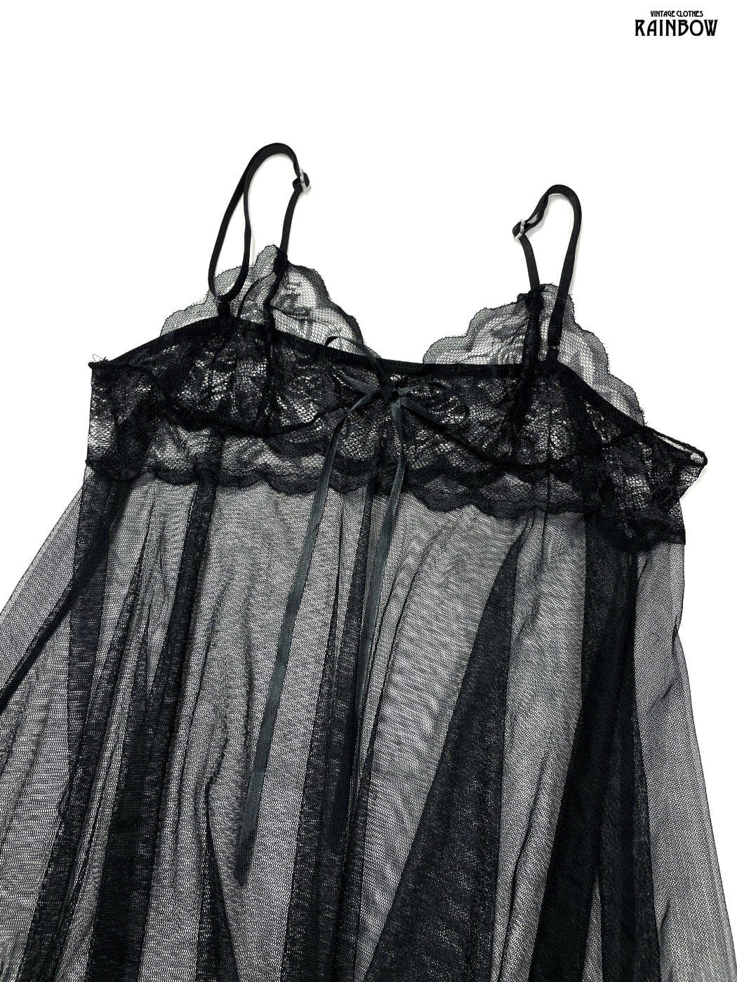 古着 リボン 無地 シフォン キャミソール 黒 (ttu2603114)