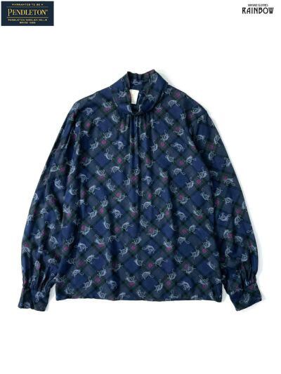 ヴィンテージ レトロ 古着 Country Sophisticates by Pendleton アメリカ製 総柄 ウール レーヨン 長袖 ブラウス 紺 (ttu2308020) | 古着屋RAINBOW