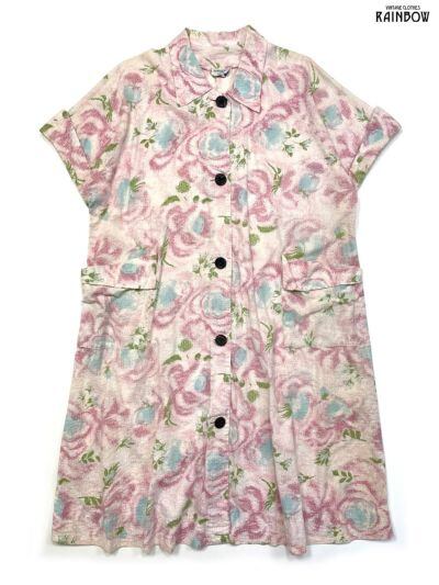 アイテム【ワンピース】袖【ハーフスリーブ】丈【ロング丈】シルエットカラー【ピンク】カラートーン柄【花柄】デザイン【前開き】テイスト【ガーリー】素材【コットン】ポケット【ポケット付き】:両サイドに各1箇所ブランド