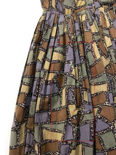 袖、スカートにダメージ、身頃の所々に白い汚れ、袖口、スカートにシミがございます。