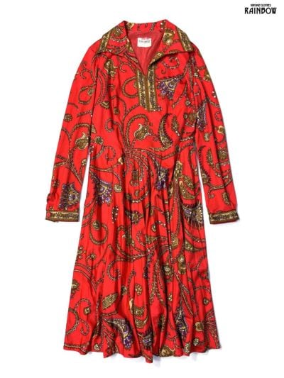 長袖総柄ワンピース
