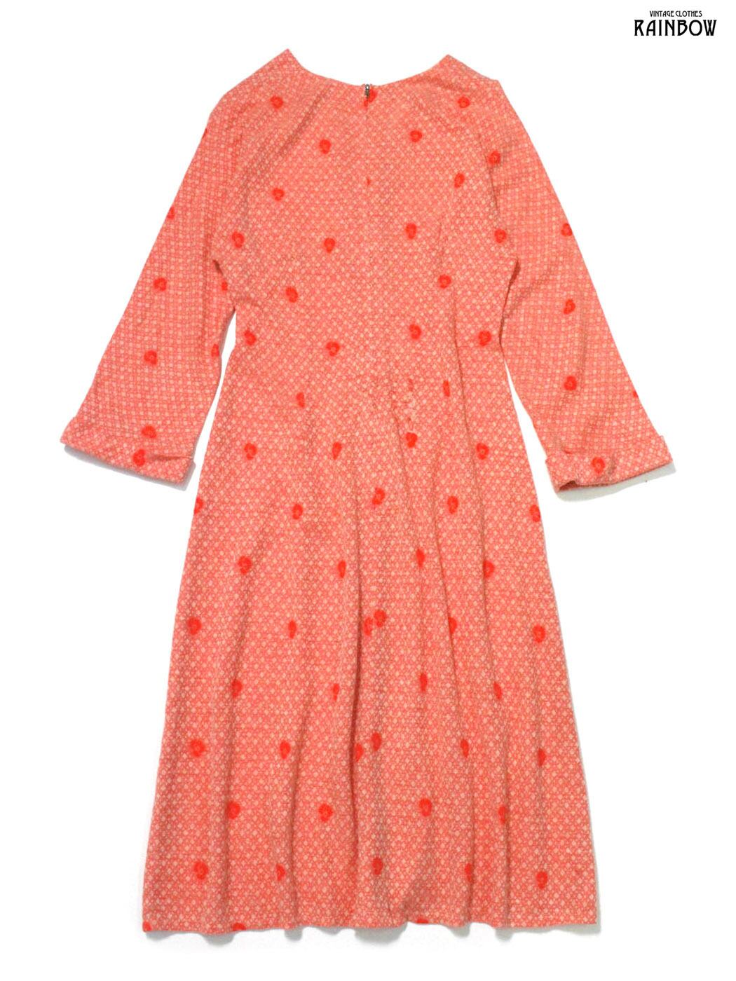 #ワンピース #ロングスリーブ #ロング丈 #フレア #バスト切り替え #オレンジ #総柄 #ガーリー #ニット地 #長袖花柄ワンピース