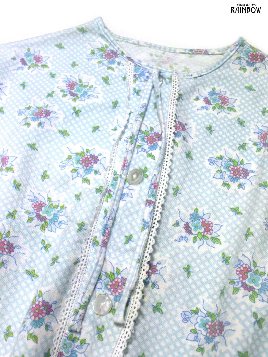 #ワンピース #ロングスリーブ #膝丈 #ストレート #青 #水色 #花柄 #リボン #レース #ガーリー #コットン #長袖花柄ワンピース