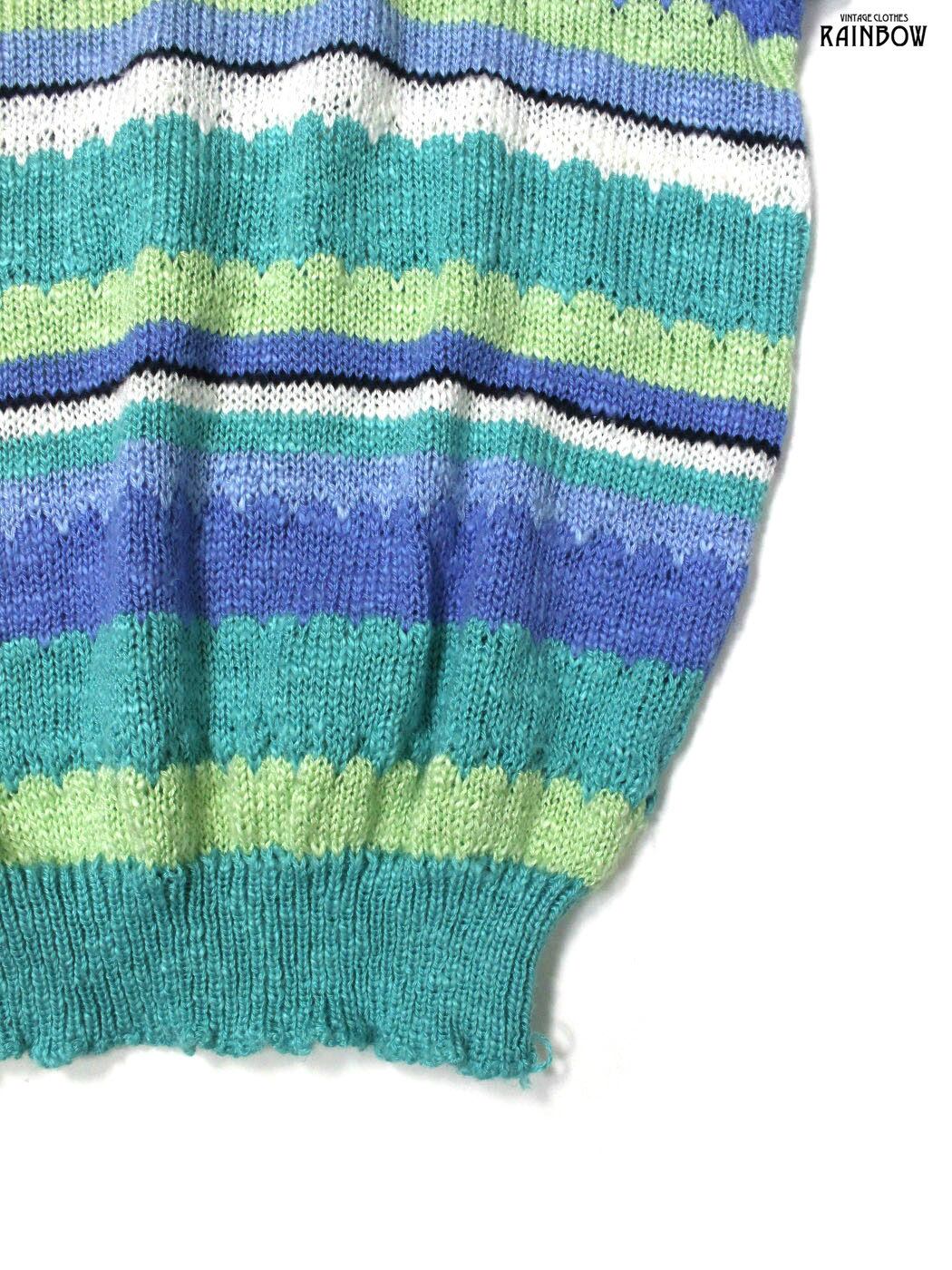 #ニット #半袖ニット #ハーフスリーブ #青 #緑 #ボーダー柄 #アメリカ製 #ユニオンメイド #ニット地 #半袖ニット