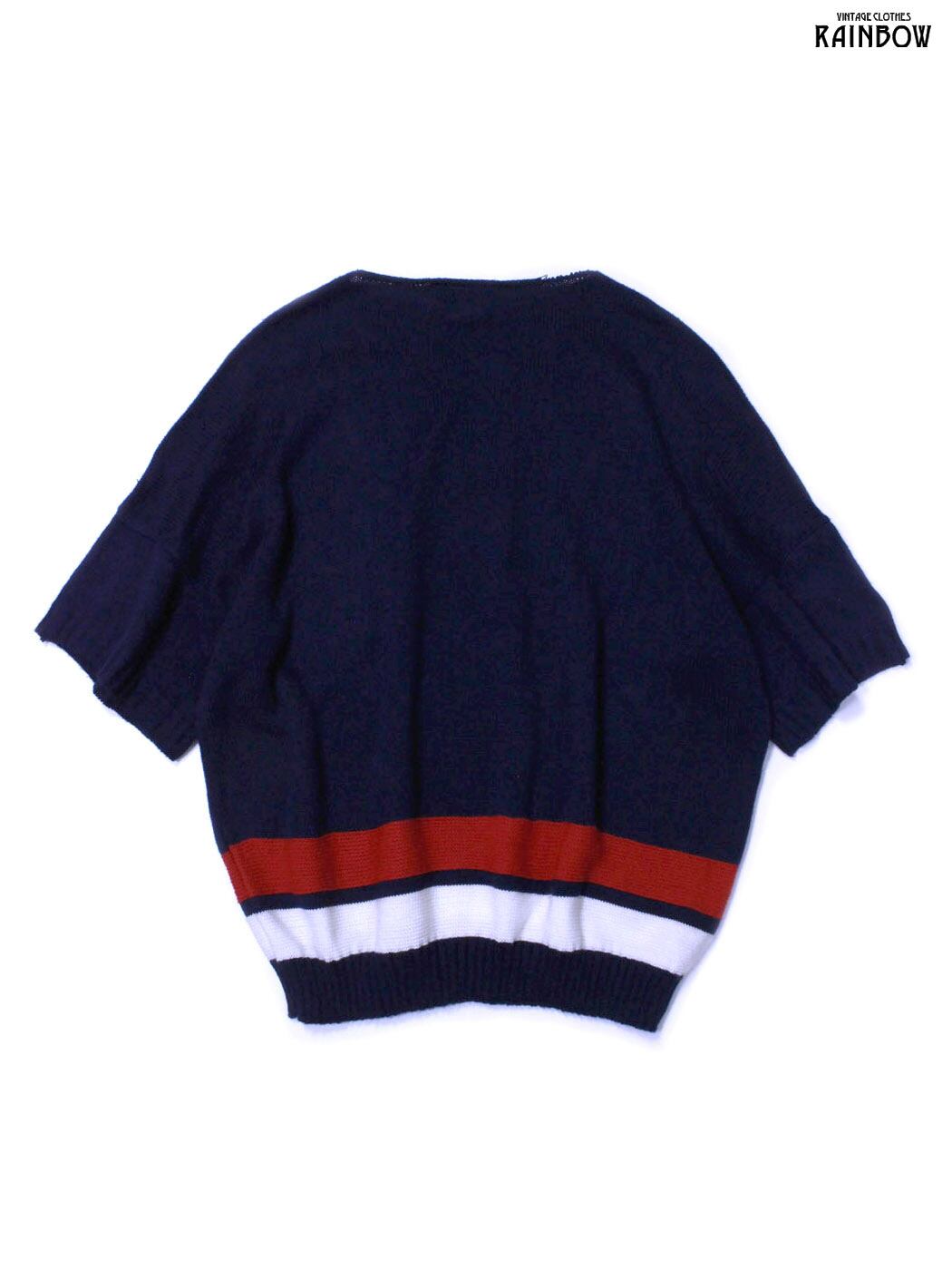#ニット #半袖ニット #ハーフスリーブ #紺 #無地 #アメリカ製#ワッペン マリン #ニット地 #半袖ニット