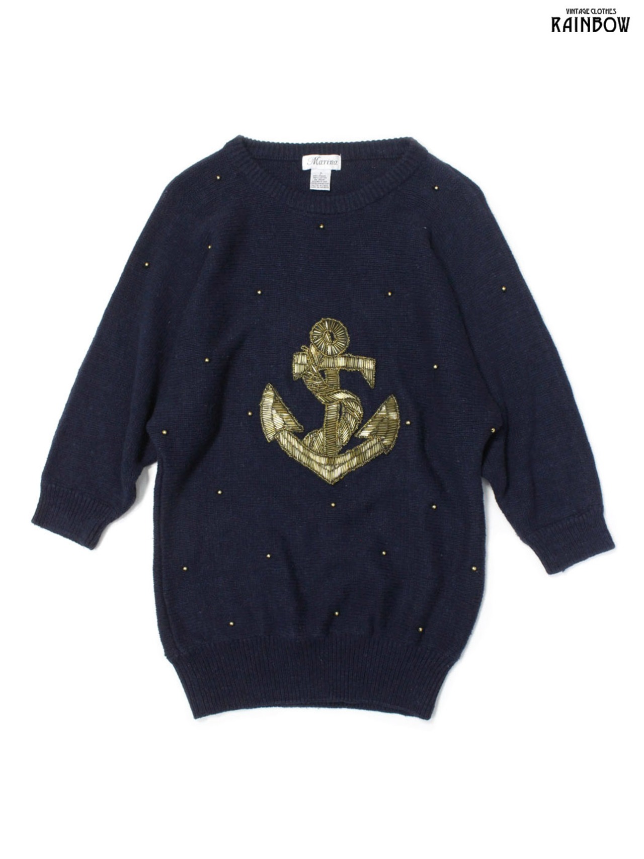 #ニット #半袖ニット #ハーフスリーブ #紺 #無地 #ビジュー マリン #ニット地 #半袖ニット