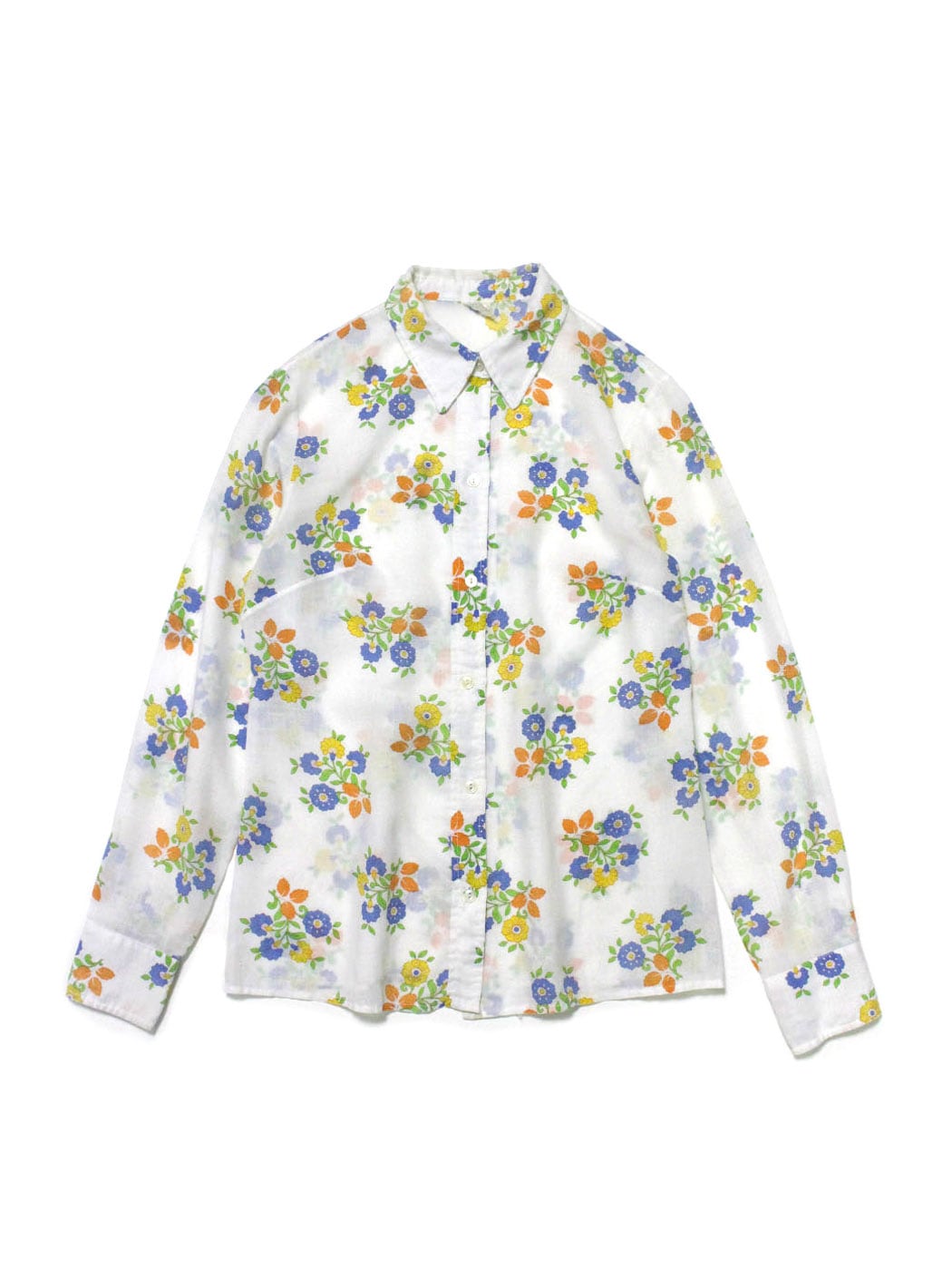 #ブラウス #シャツ #ロングスリーブ #白#オレンジ #花柄 #前開き #ガーリー #コットン #柄シャツ