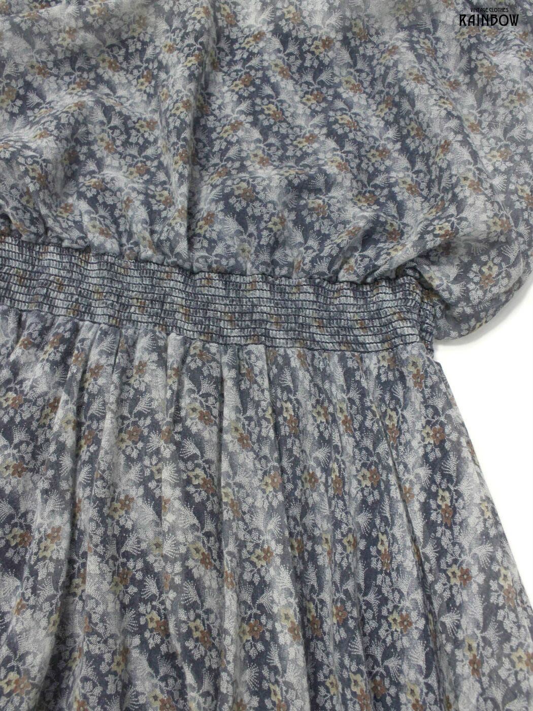 #ワンピース #ロングスリーブ #ロング丈 #フレア #ゴムウエスト #ウエスト切り替え #青 #花柄 #クラシック #レーヨン #長袖花柄ワンピース