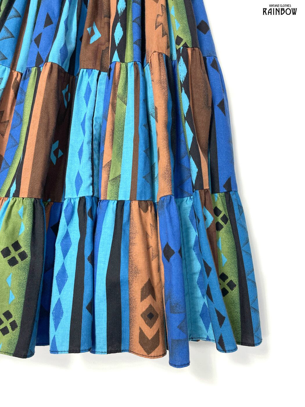 #スカート #膝丈 #ティアード#ゴムウエスト #青#カラフル #総柄#エスニック柄 #アメリカ製 #エスニック #コットン #エスニックスカート