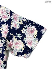 #ブラウス #シャツ #ハーフスリーブ #紺 #花柄 #アメリカ製 #前開き #クラシック #レーヨン #半袖柄シャツ