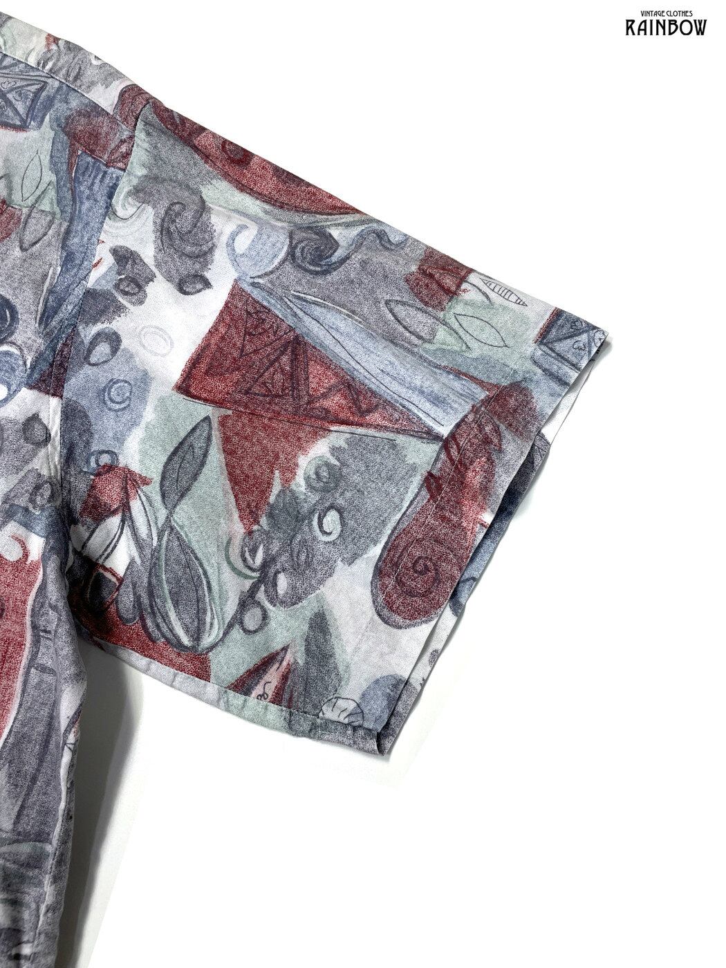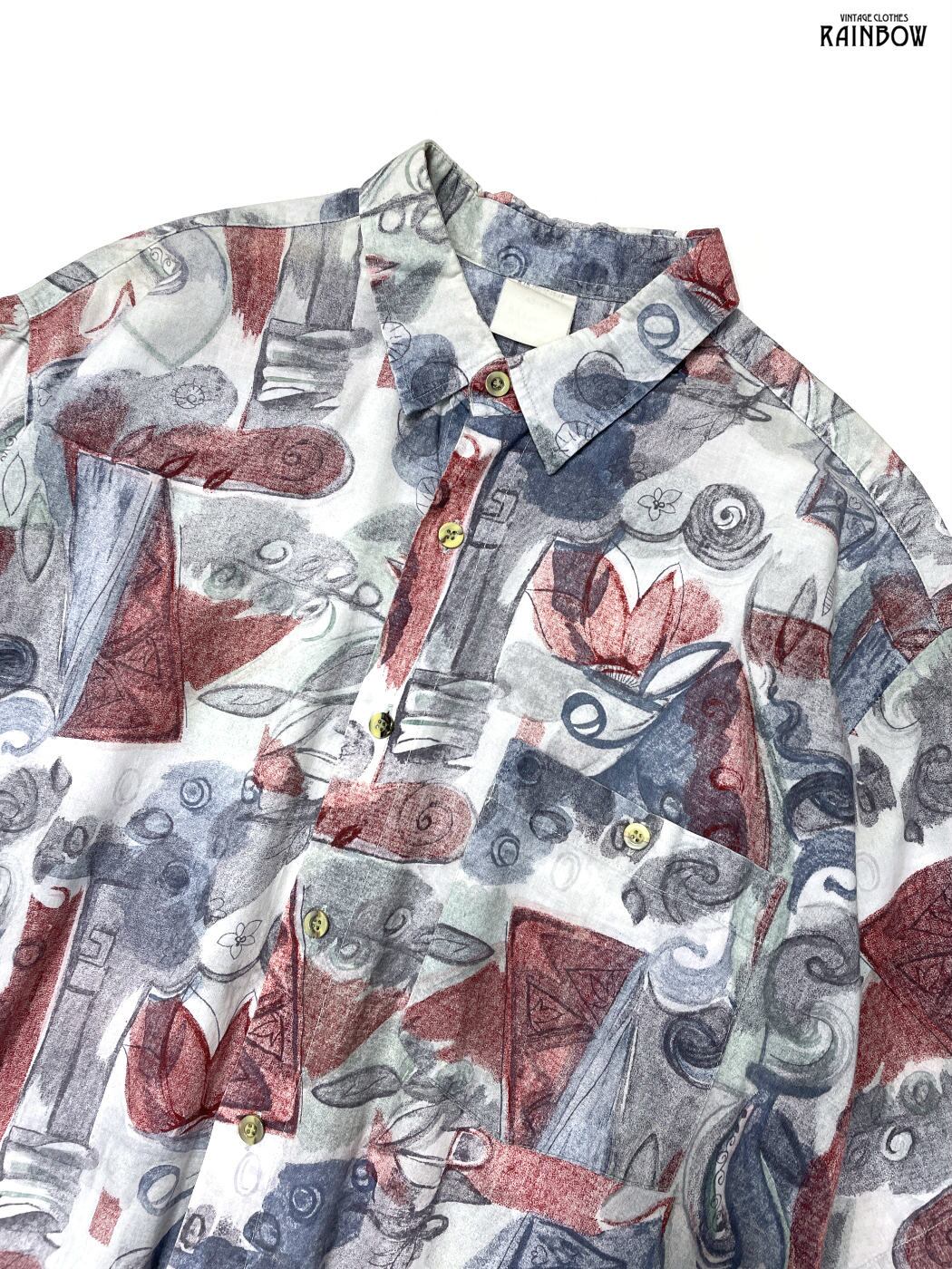 #ブラウス #シャツ #ハーフスリーブ #グレー #総柄 #前開き #シック #コットン #半袖柄シャツ