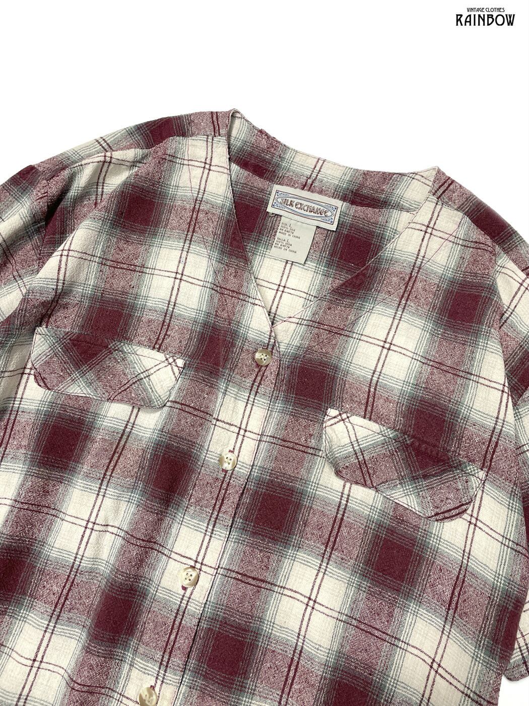 #ブラウス #シャツ #ハーフスリーブ #赤#ベージュ #チェック柄 #前開き #シルク #半袖柄シャツ