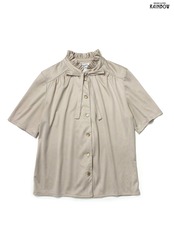 #ブラウス #bブラウス #ハーフスリーブ #ベージュ #無地 #フリル#リボン#前開き #半袖無地ブラウス