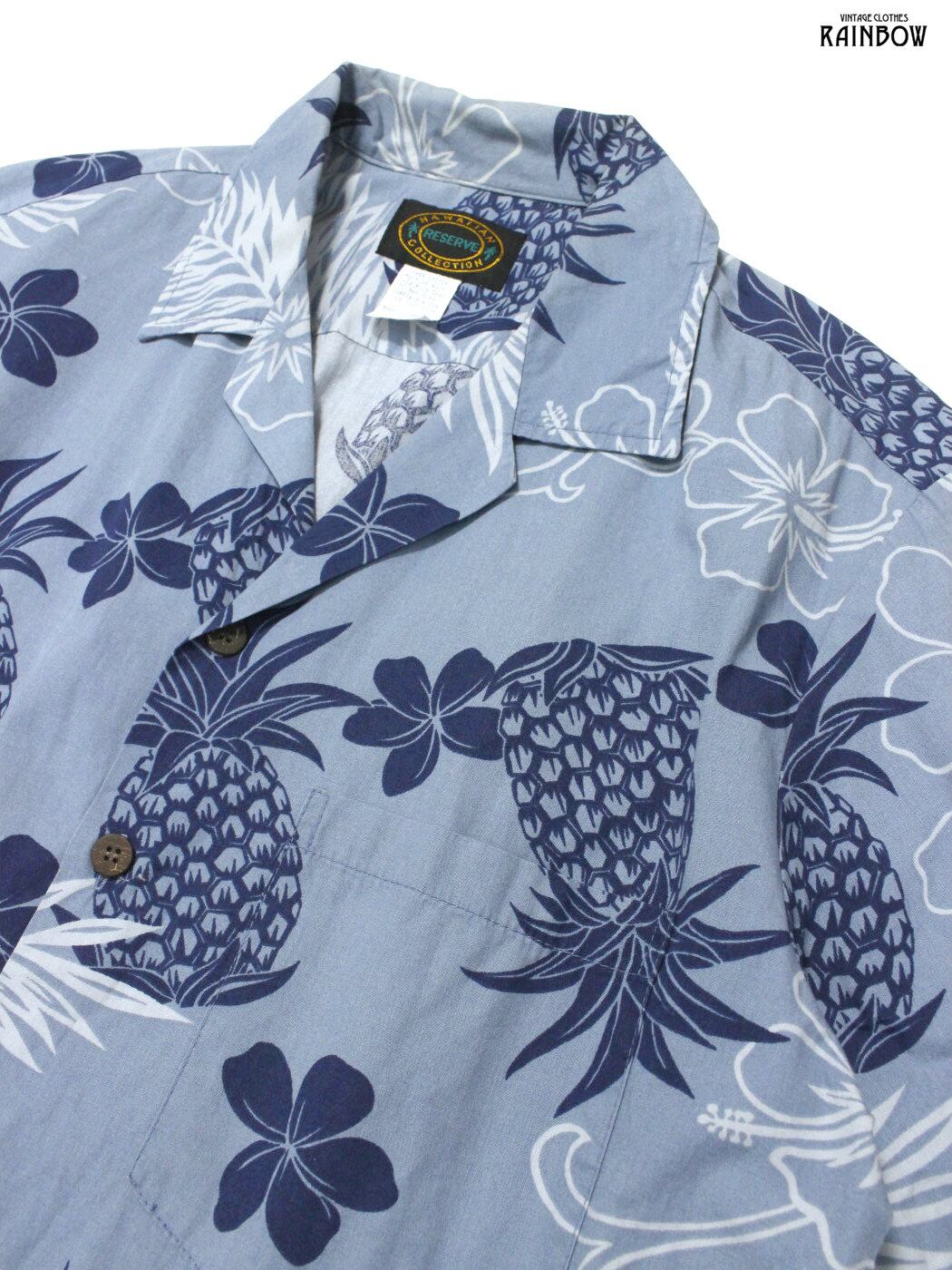 #ブラウス #シャツ #ハーフスリーブ #青 #水色 #花柄 #アメリカ製 #クラシック #コットン #アロハシャツ