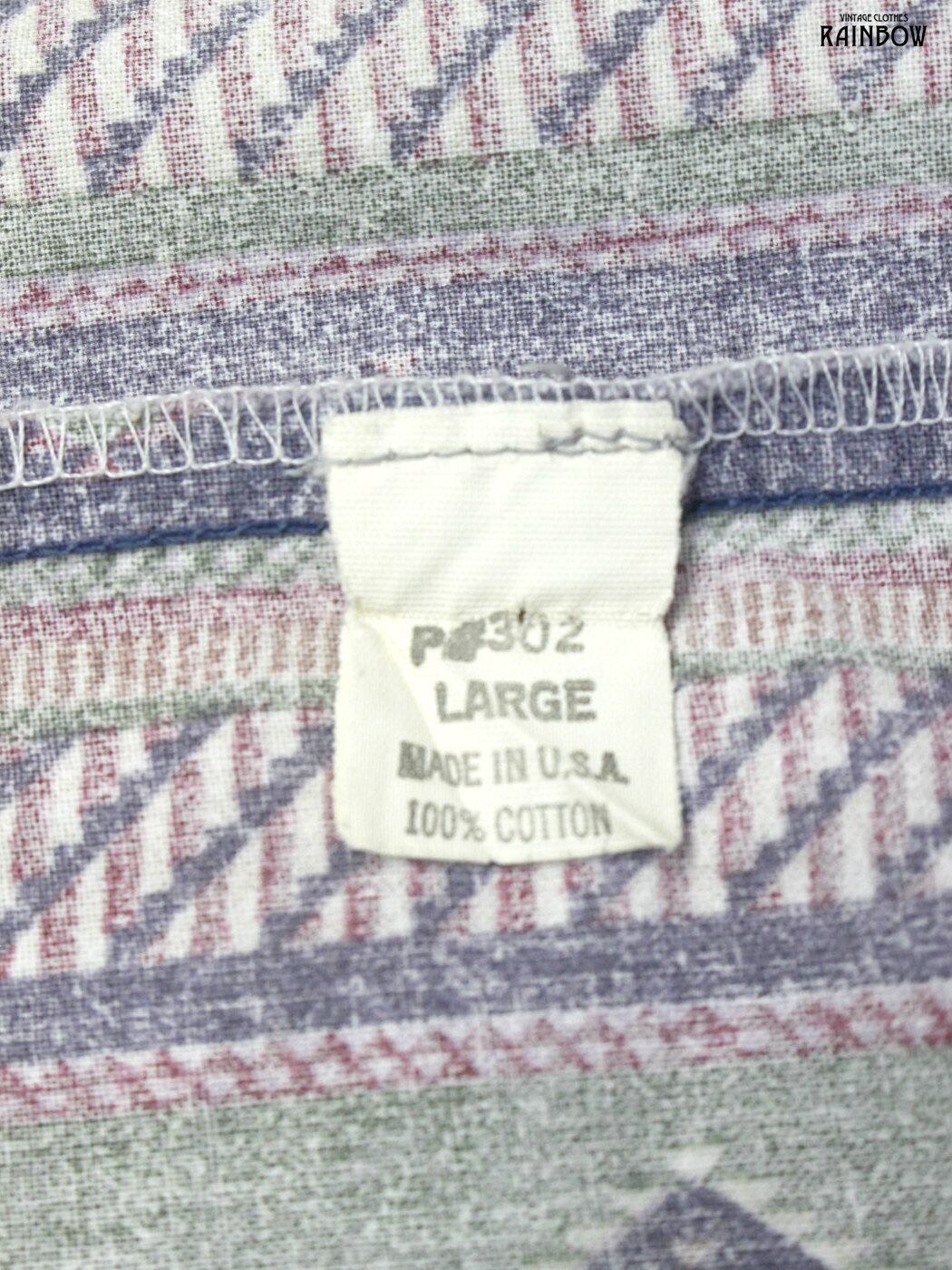 #ブラウス #シャツ #ハーフスリーブ #青 #緑 #総柄 #アメリカ製 #前開き #クラシック #コットン #総柄シャツ