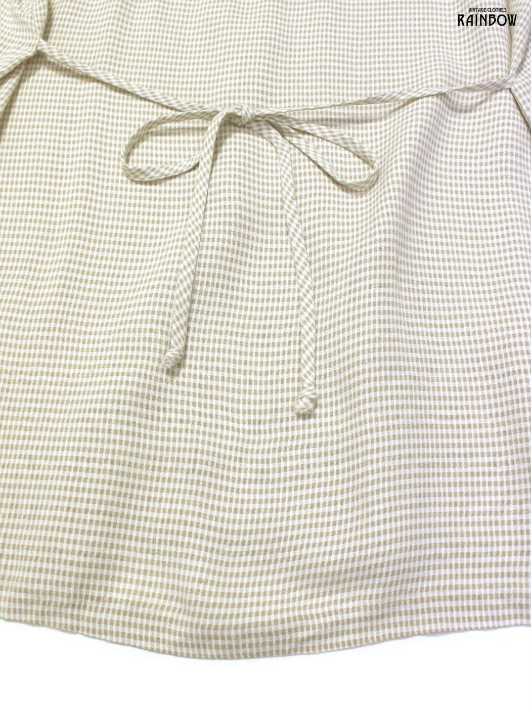#ブラウス #bブラウス #ハーフスリーブ #ロング丈 #ベージュ #チェック柄 #ギンガムチェック柄 #ベルト付き #ナチュラル #レーヨン #チェック柄シャツ