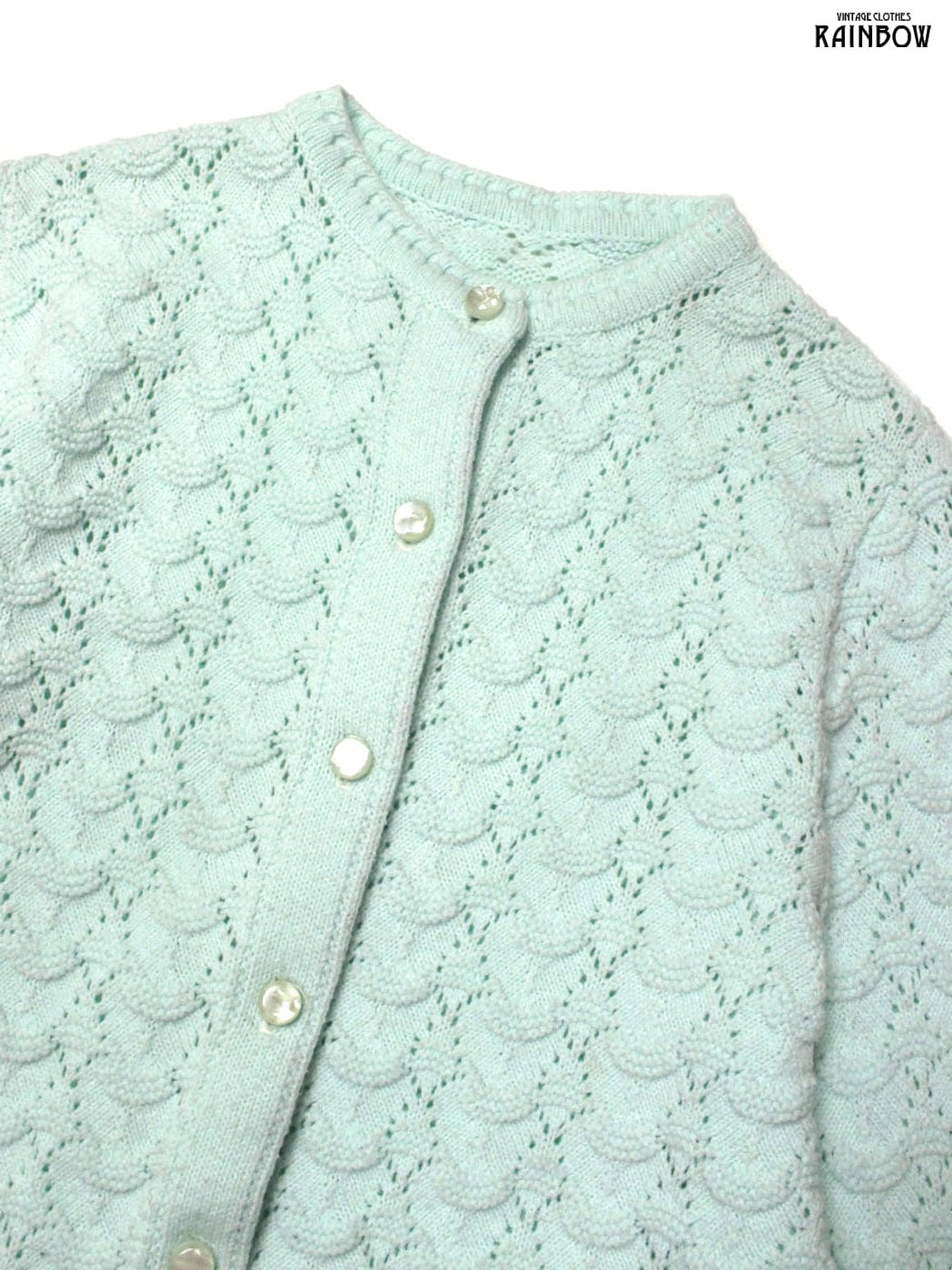 #ニット #カーディガン #ロングスリーブ #緑 #水色 #無地 #ガーリー #ニット地 #無地カーディガン