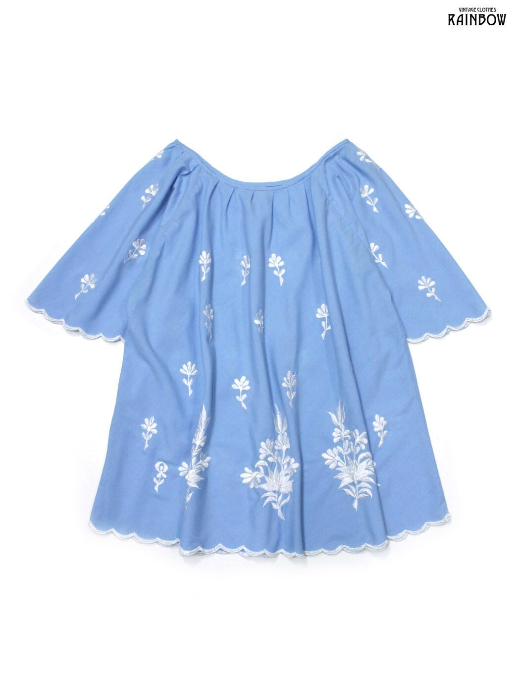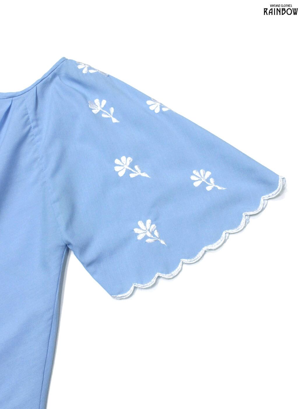 #ブラウス #bブラウス #ハーフスリーブ #青 #水色 #無地 #刺繍 #ガーリー #コットン #刺繍シャツ