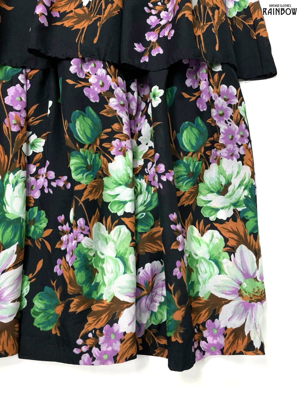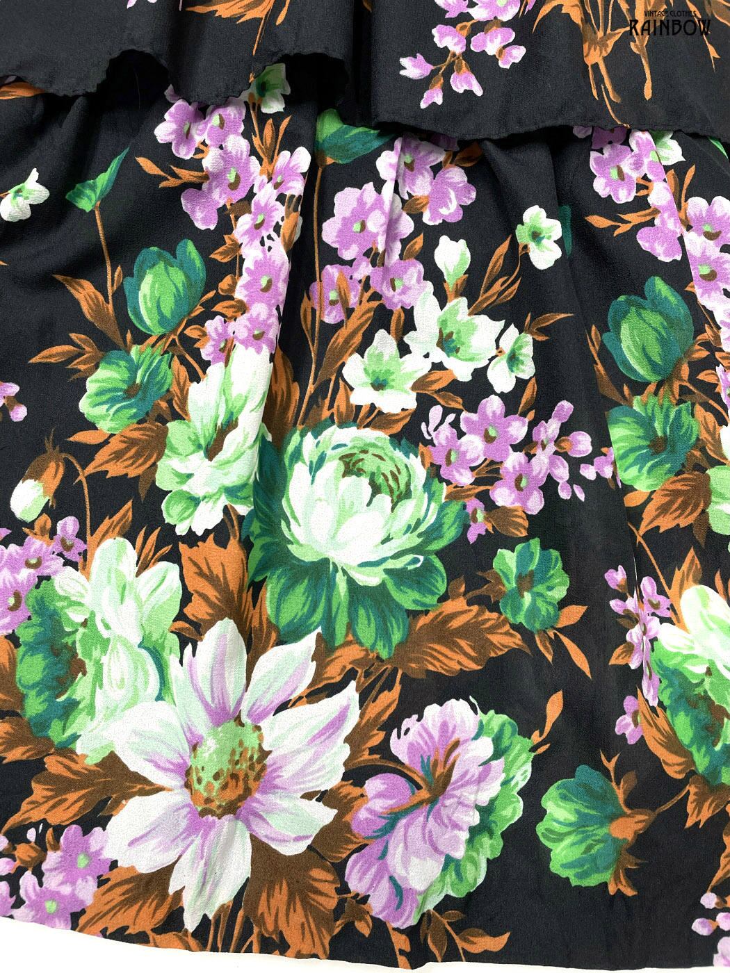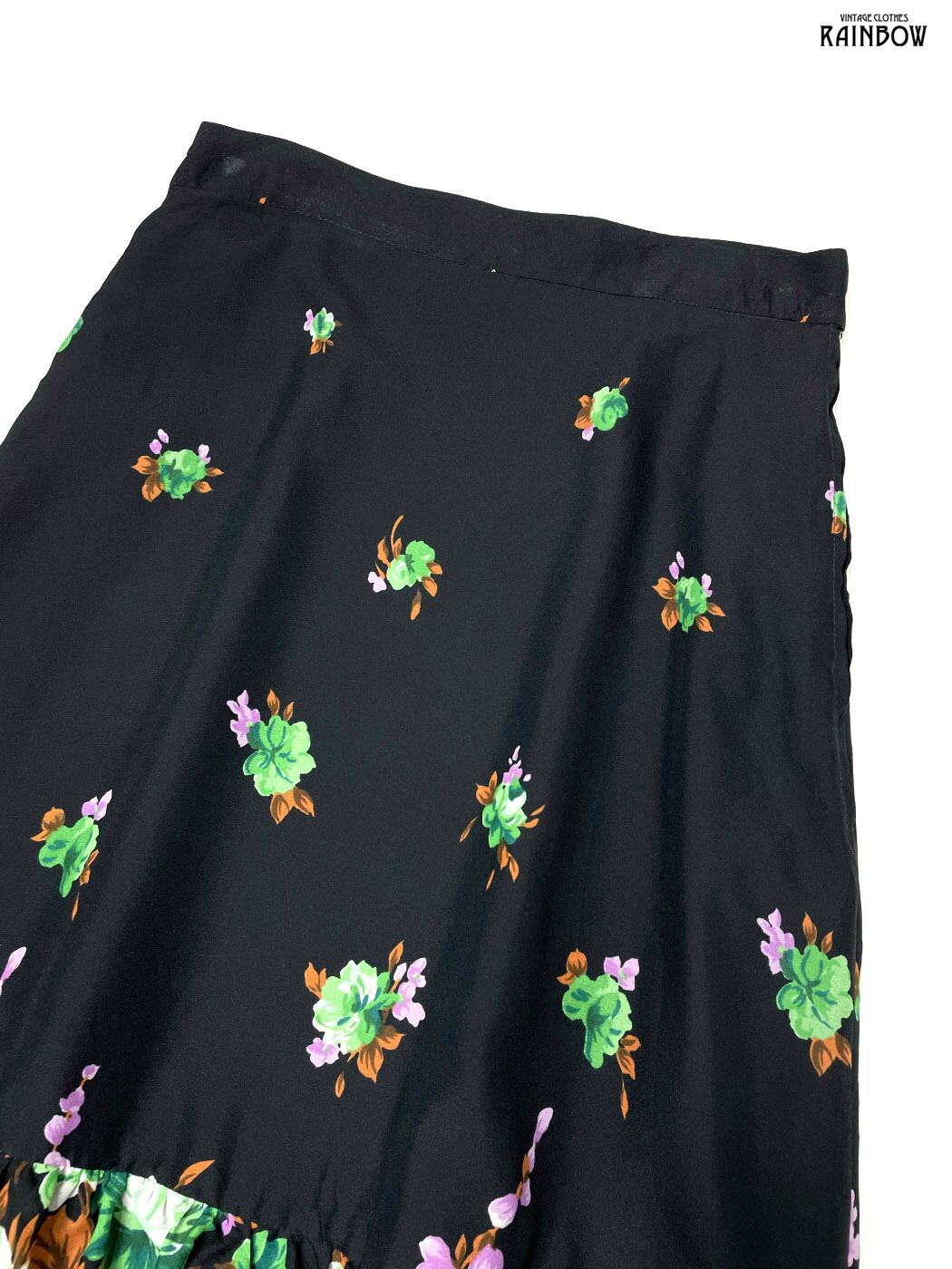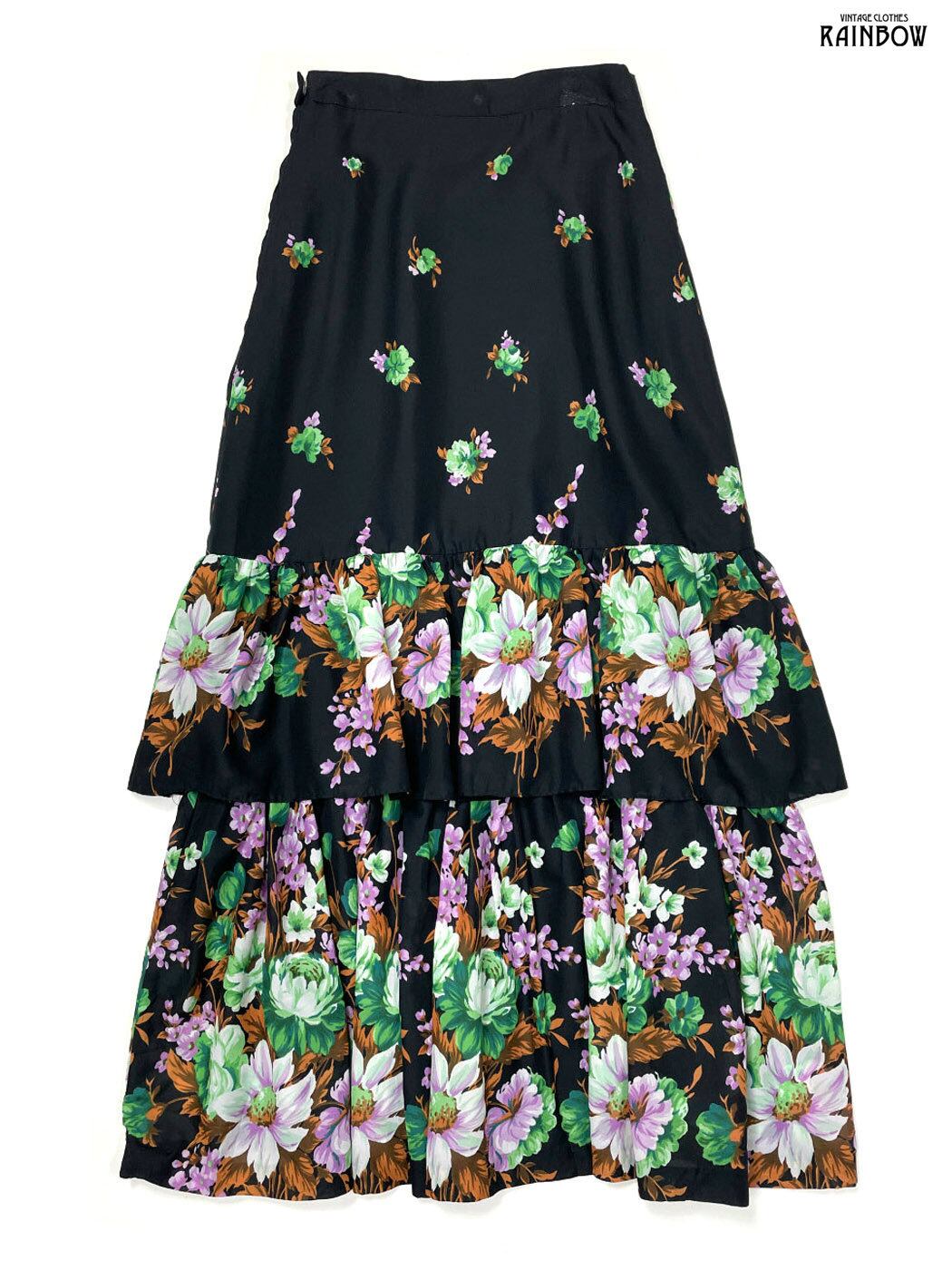 #スカート #ロング丈 #ティアード #黒 #花柄 #TALONジップ#クラシック #柄スカート