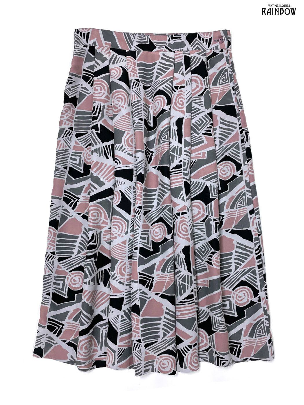 #スカート #ロング丈 #フレア #ピンク#グレー #総柄 #アメリカ製 #柄スカート