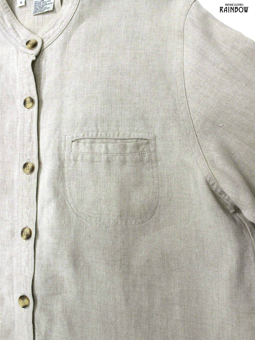 #ブラウス #シャツ #ロングスリーブ #ベージュ #無地 #前開き #ナチュラル #リネン #リネンシャツ #スタンドカラー