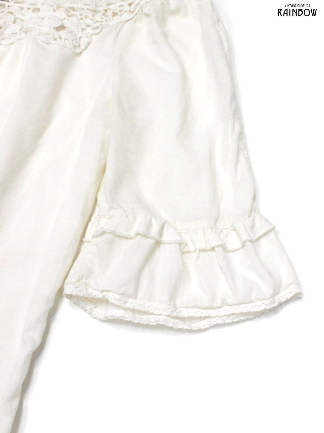 #ブラウス #bブラウス #ハーフスリーブ #白 #生成り #無地 #リボン #レース #ナチュラル #コットン #半袖無地ブラウス