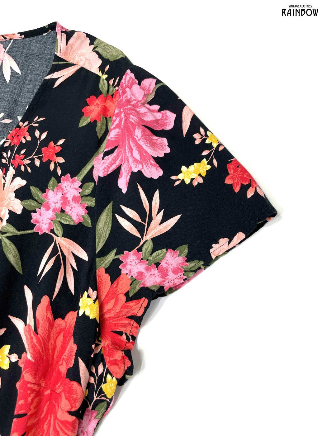 #ワンピース #ハーフスリーブ #ロング丈 #ウエスト切り替え #黒 #花柄 #クラシック #レーヨン #半袖花柄ワンピース