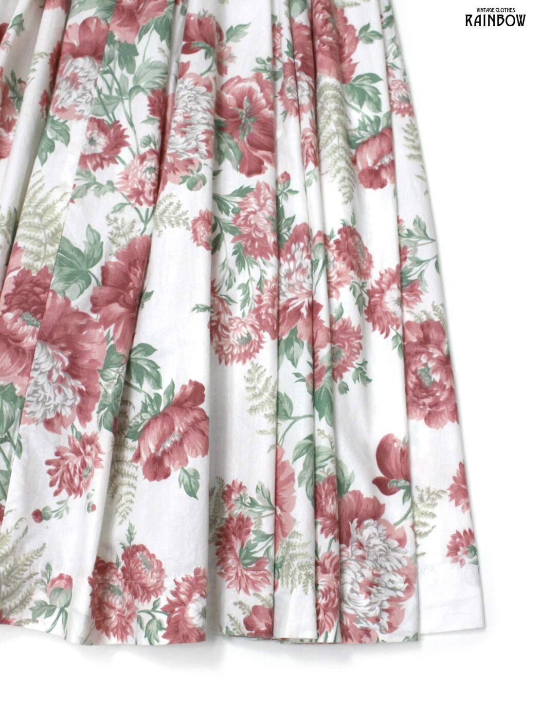 #ワンピース #ハーフスリーブ #ロング丈 #ウエスト切り替え #ピンク #花柄 #ガーリー #コットン #半袖花柄ワンピース