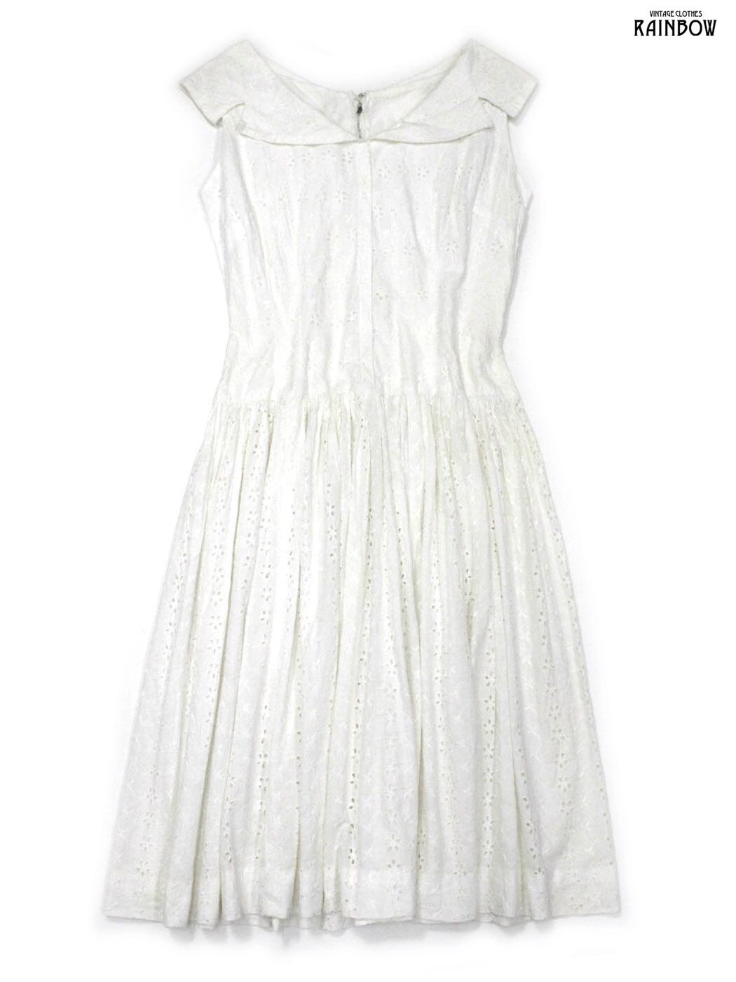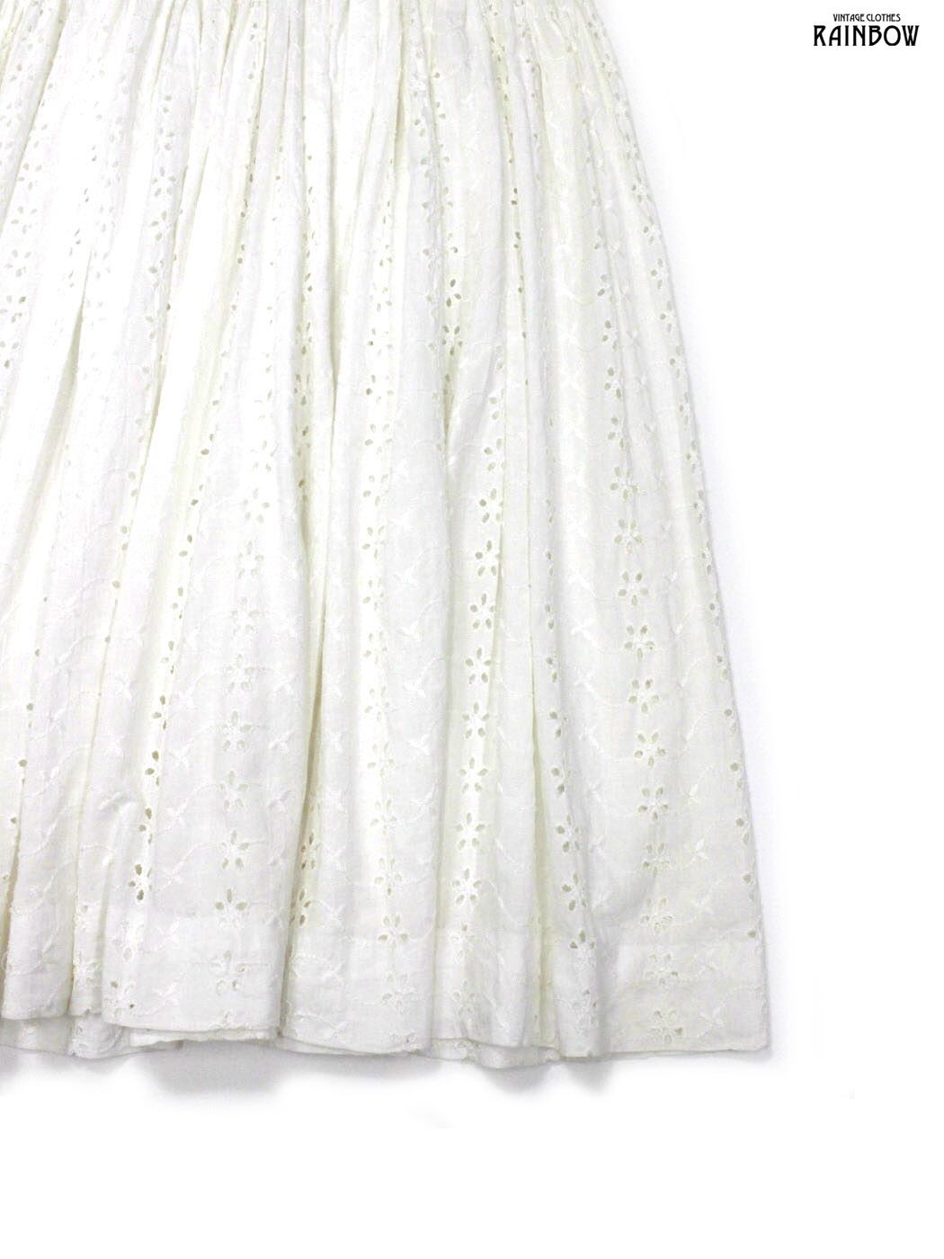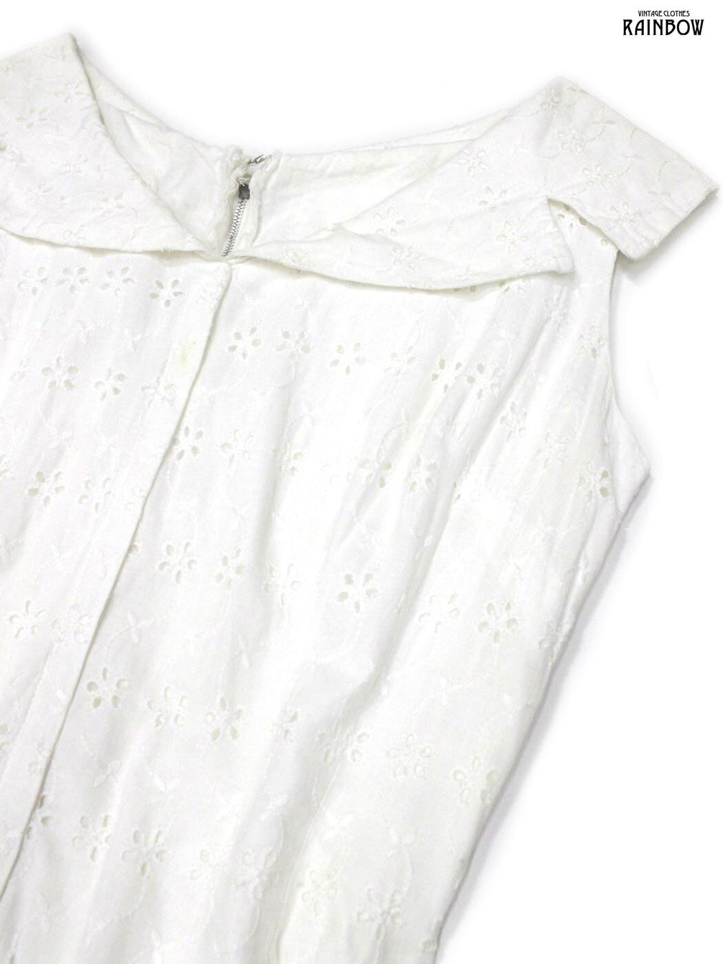 #ワンピース #ノースリーブ #ロング丈 #フレア #ウエスト切り替え #白 #無地 カットワークレース #レース #セーラーカラー #ガーリー #コットン #ノースリーブ無地ワンピース