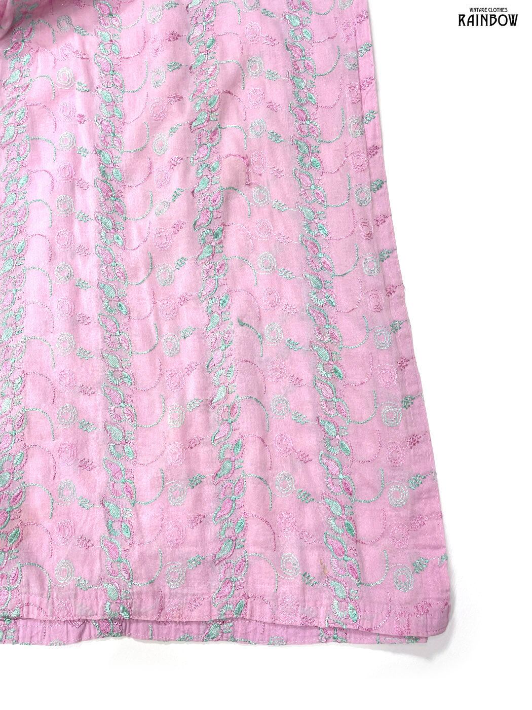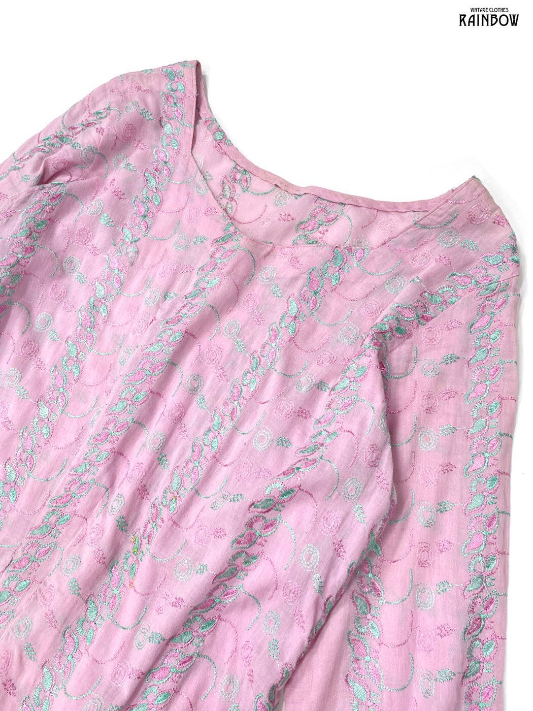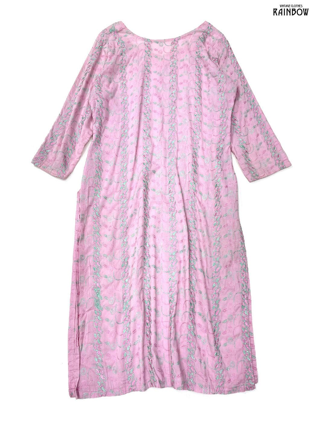 #ワンピース #ロングスリーブ #ロング丈 #ストレート #ピンク #花柄 #刺繍 #ガーリー #コットン #刺繍ワンピース