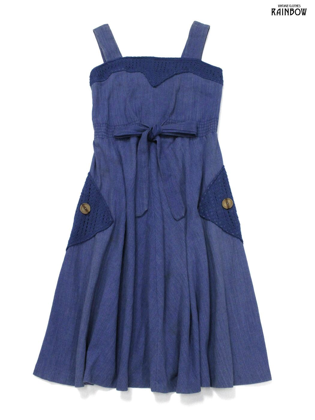 #ワンピース #キャミソール #ロング丈 #紺 #無地 #リボン #コットン #キャミソール無地ワンピース