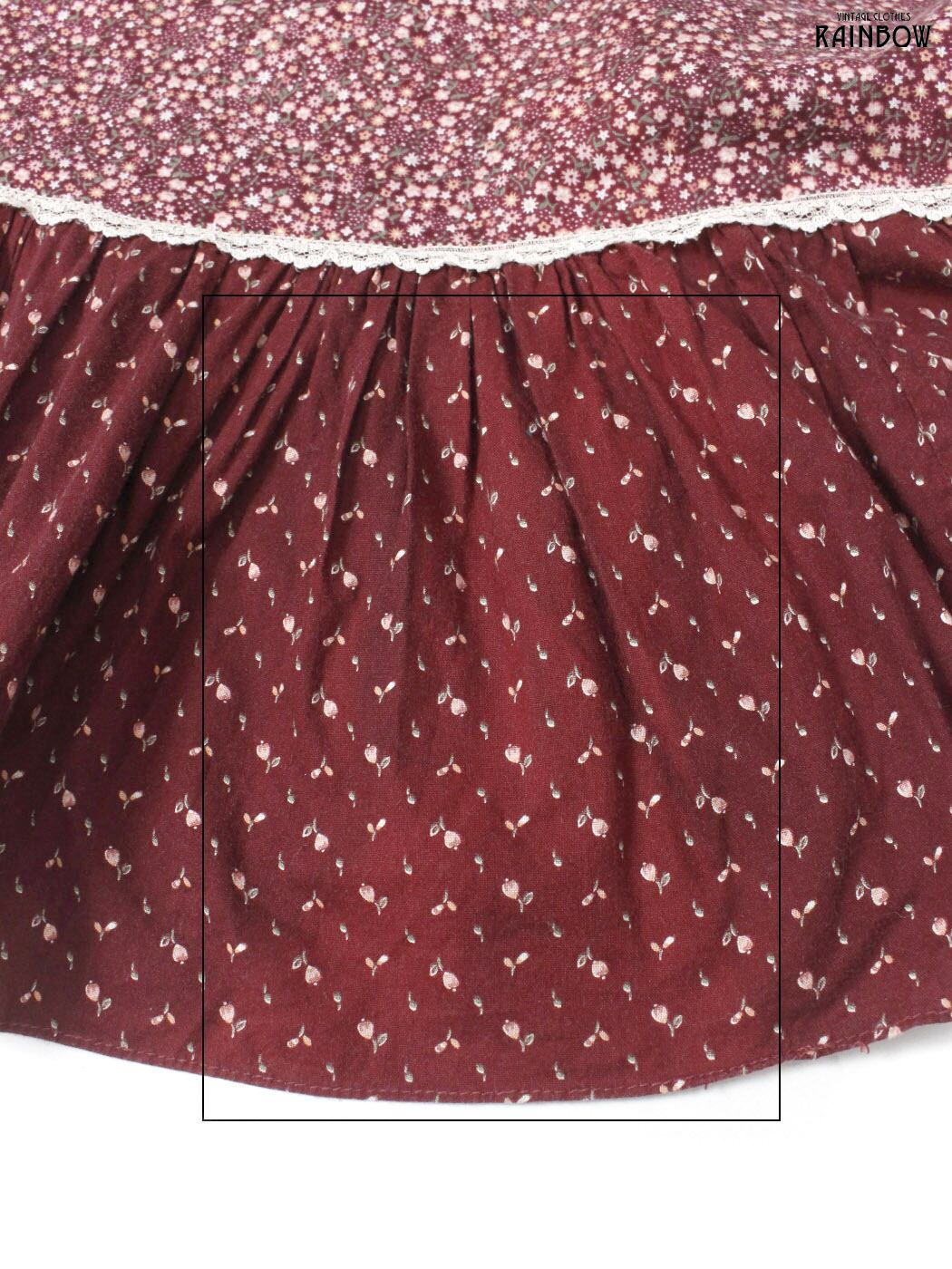 #ワンピース #ハーフスリーブ #ロング丈 #フレア #赤 #ボルドー #花柄 #レース #クラシック #コットン #半袖花柄ワンピース