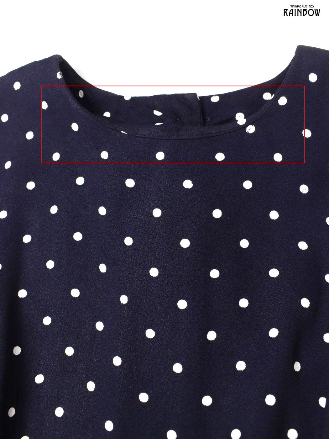 #ワンピース #ハーフスリーブ #ロング丈 #フレア #ストレート #ウエスト切り替え #紺 #ドット柄 #アメリカ製 #TALONジップ #ガーリー #クラシック #ナイロン #半袖ドット柄ワンピース