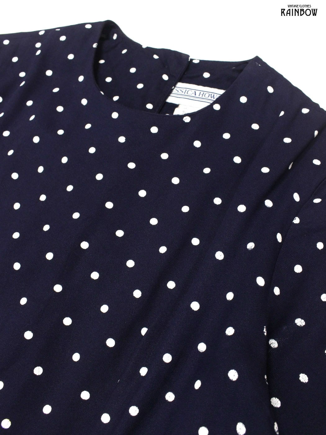 古着 JESSICA HOWARD ジェシカハワード アメリカ製 otu2405068TALONジップ ドット柄 ナイロン ロング丈 半袖 ワンピース 紺 (otu2405068) | 古着屋RAINBOW