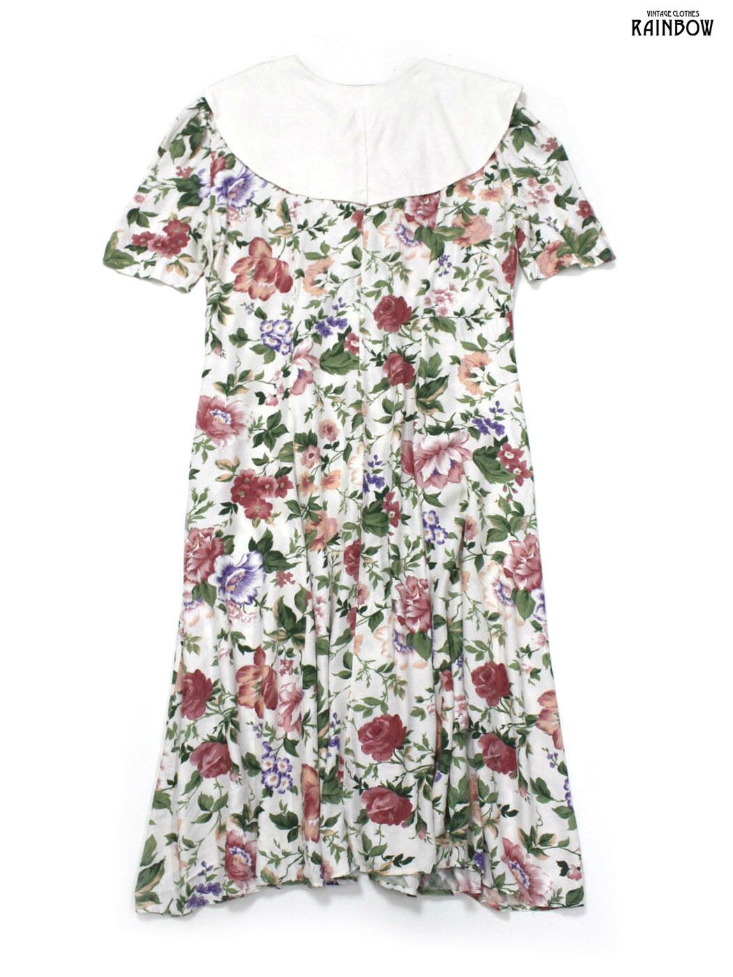 #ワンピース #ハーフスリーブ #ロング丈 #フレア #ピンク #花柄 #アメリカ製 #刺繍 #レース #ビッグカラー #セーラーカラー #ガーリー #クラシック #レーヨン #半袖花柄ワンピース