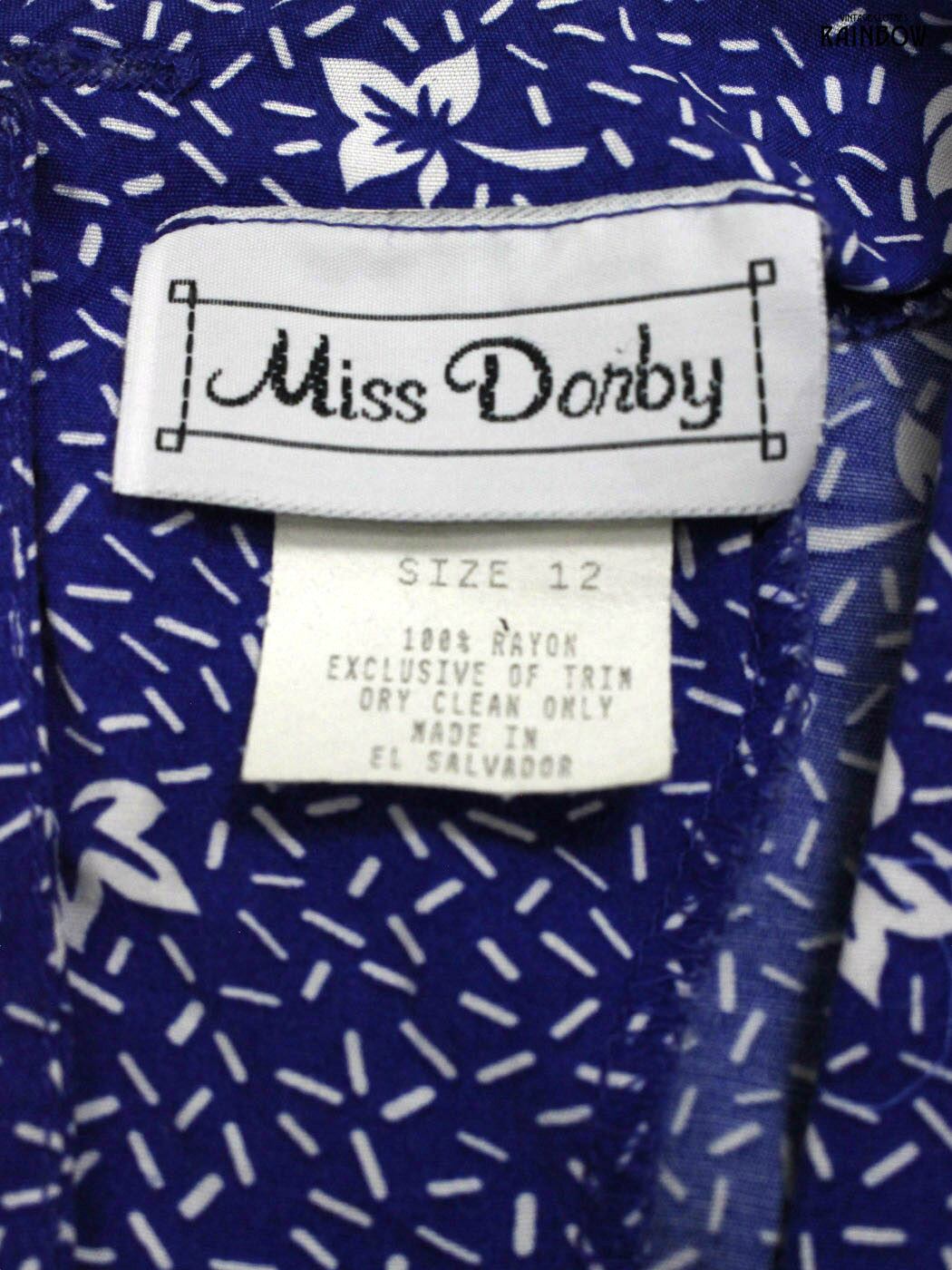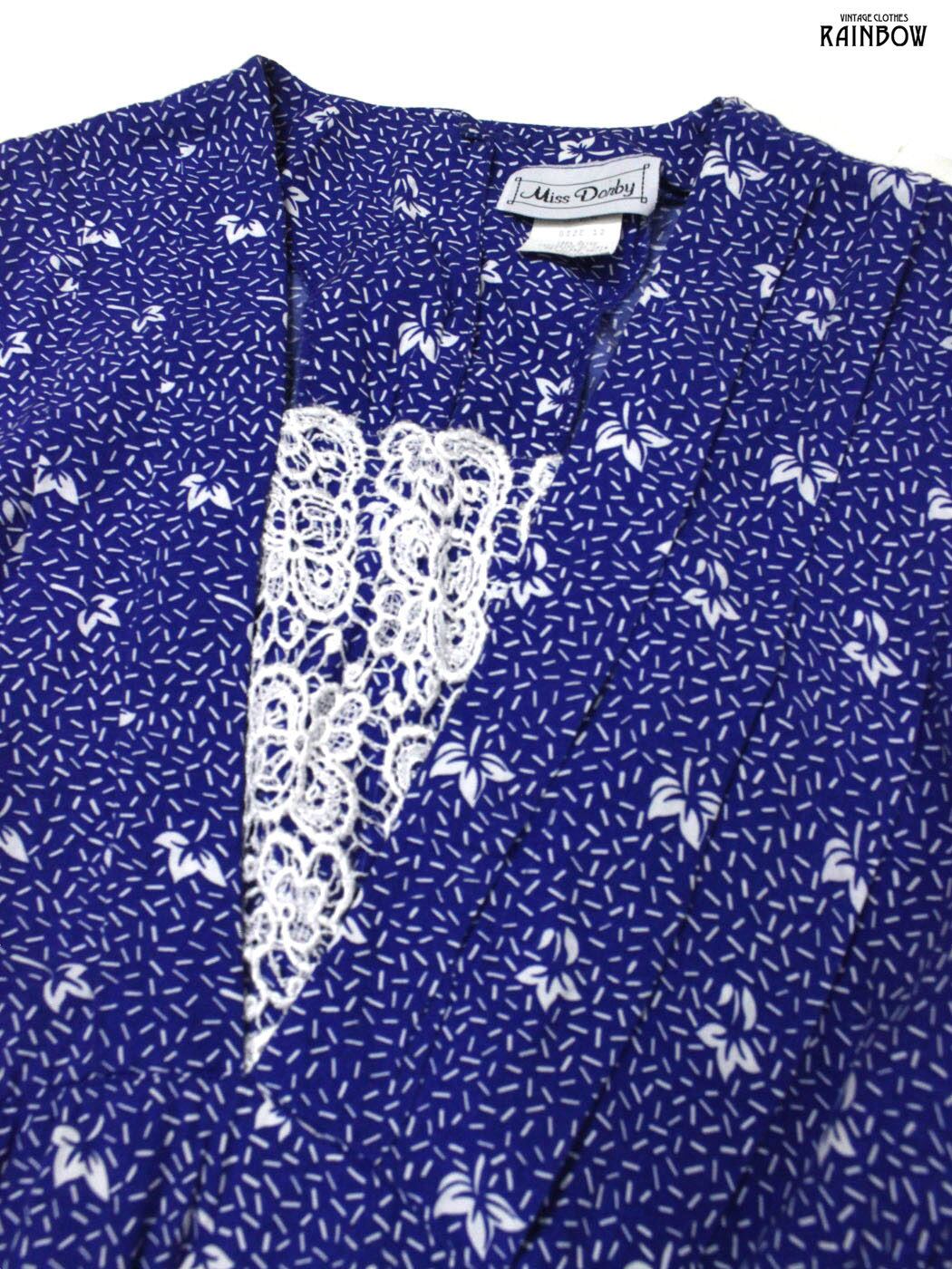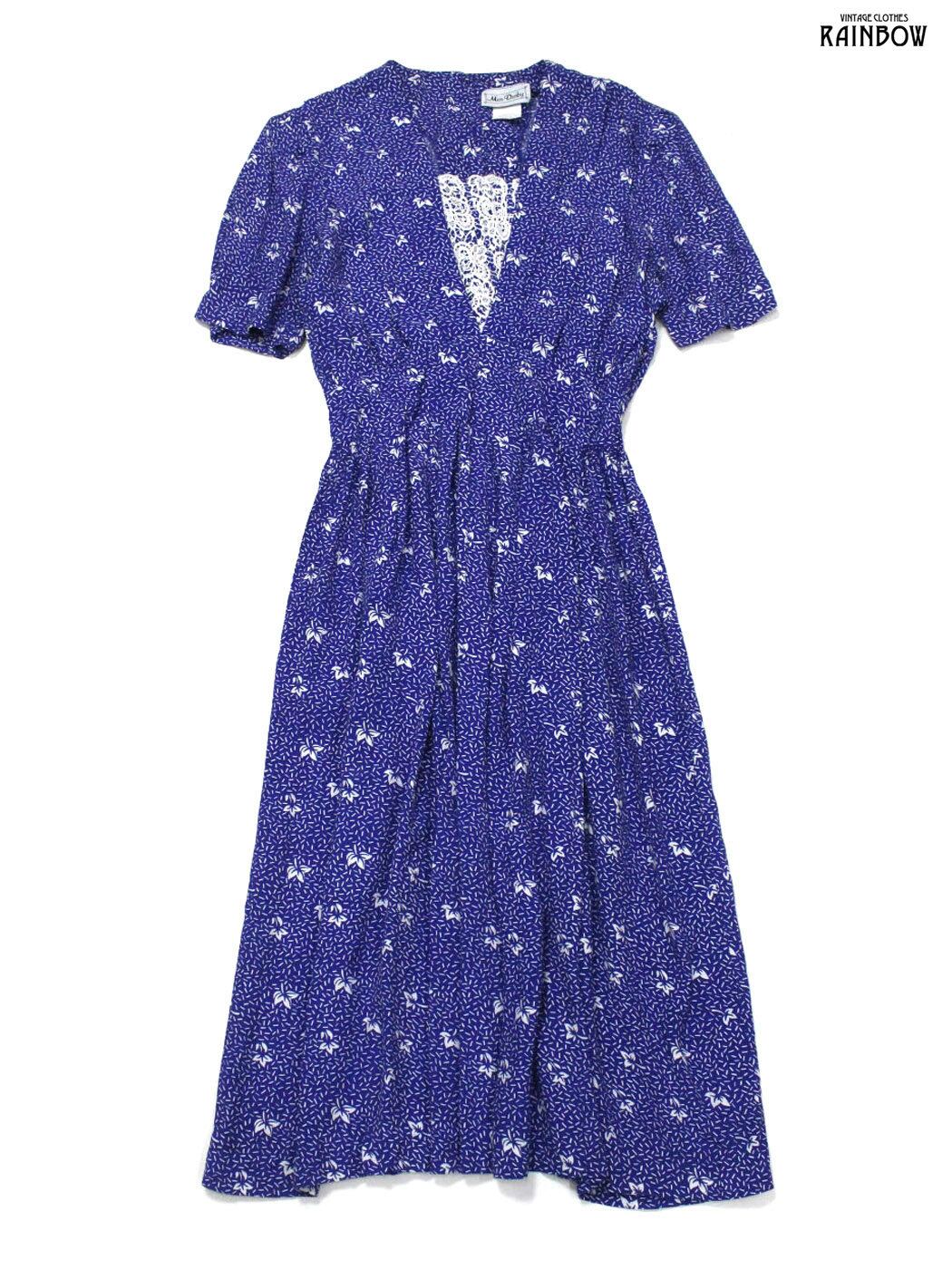 古着 Miss Dorby パフスリーブ 刺繍レース 総柄 ロング丈 半袖 ワンピース 青 (otu2405077)