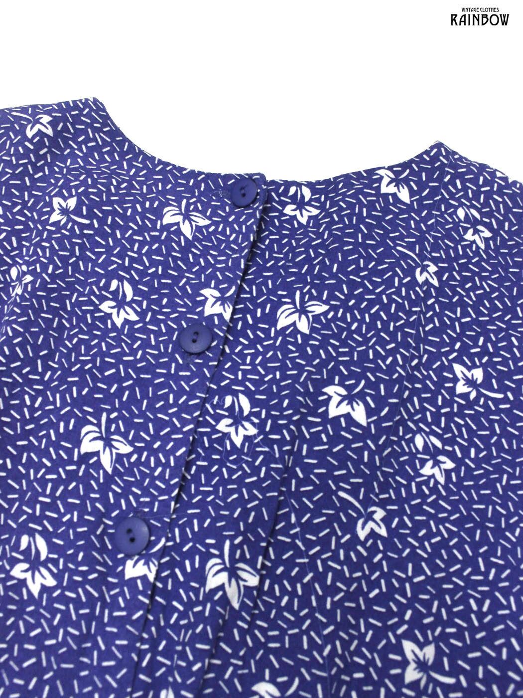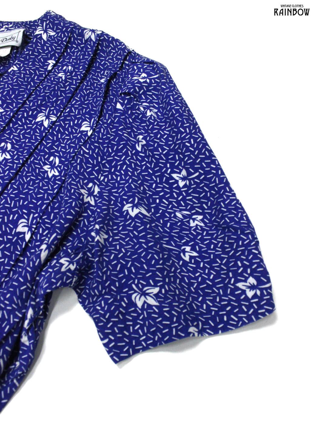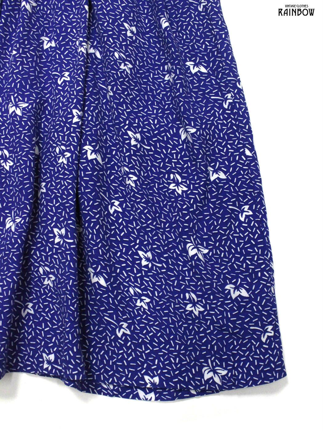 古着 Miss Dorby パフスリーブ 刺繍レース 総柄 ロング丈 半袖 ワンピース 青 (otu2405077)