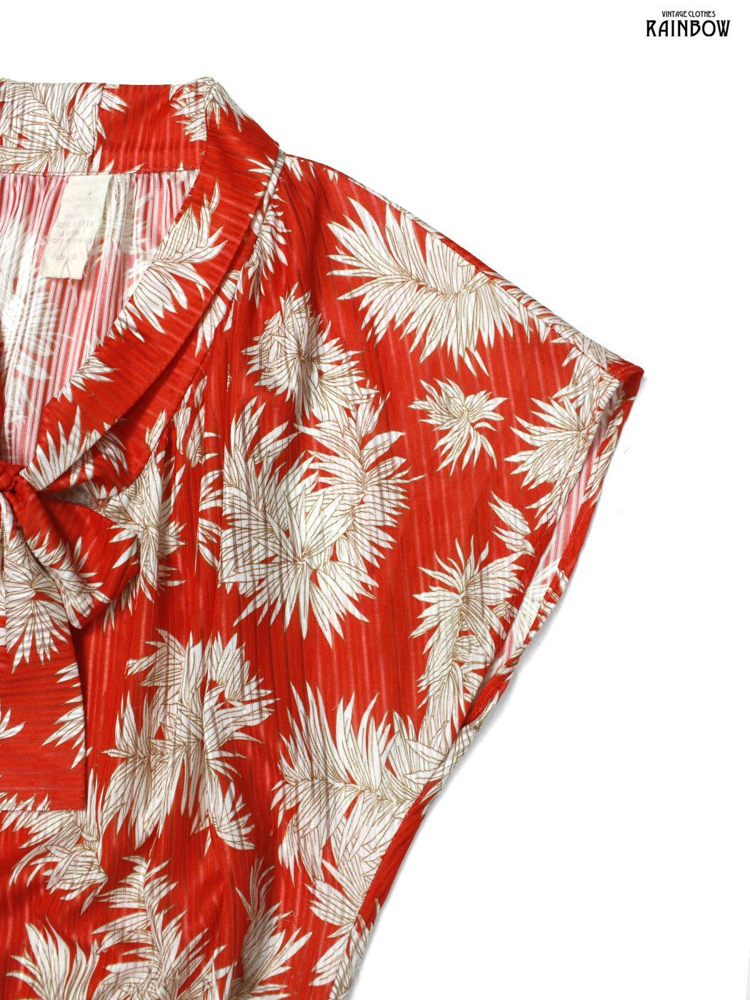 #ワンピース #ハーフスリーブ #膝丈 #フレア #ゴムウエスト #ウエスト切り替え #赤 #総柄 #リボン #ボウタイリボン #フレンチスリーブ #ガーリー #半袖総柄ワンピース