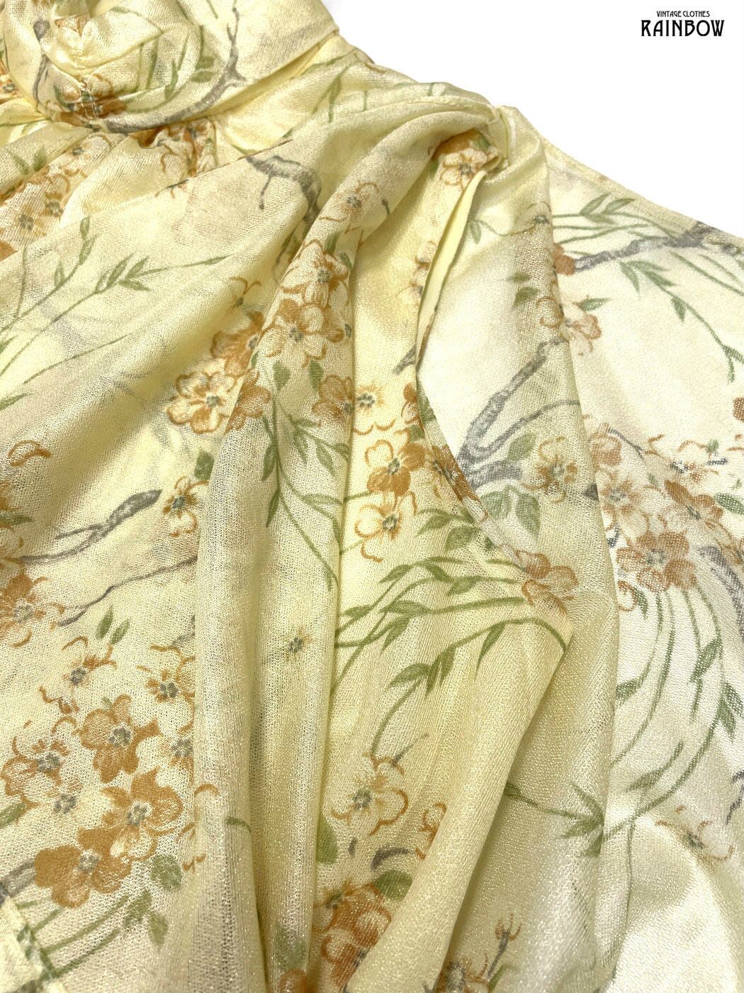 #ワンピース #ハーフスリーブ #膝丈 #フレア #ウエスト切り替え #黄 #花柄 #ハイネック #フリルスリーブ #オープンショルダー #ガーリー #半袖花柄ワンピース