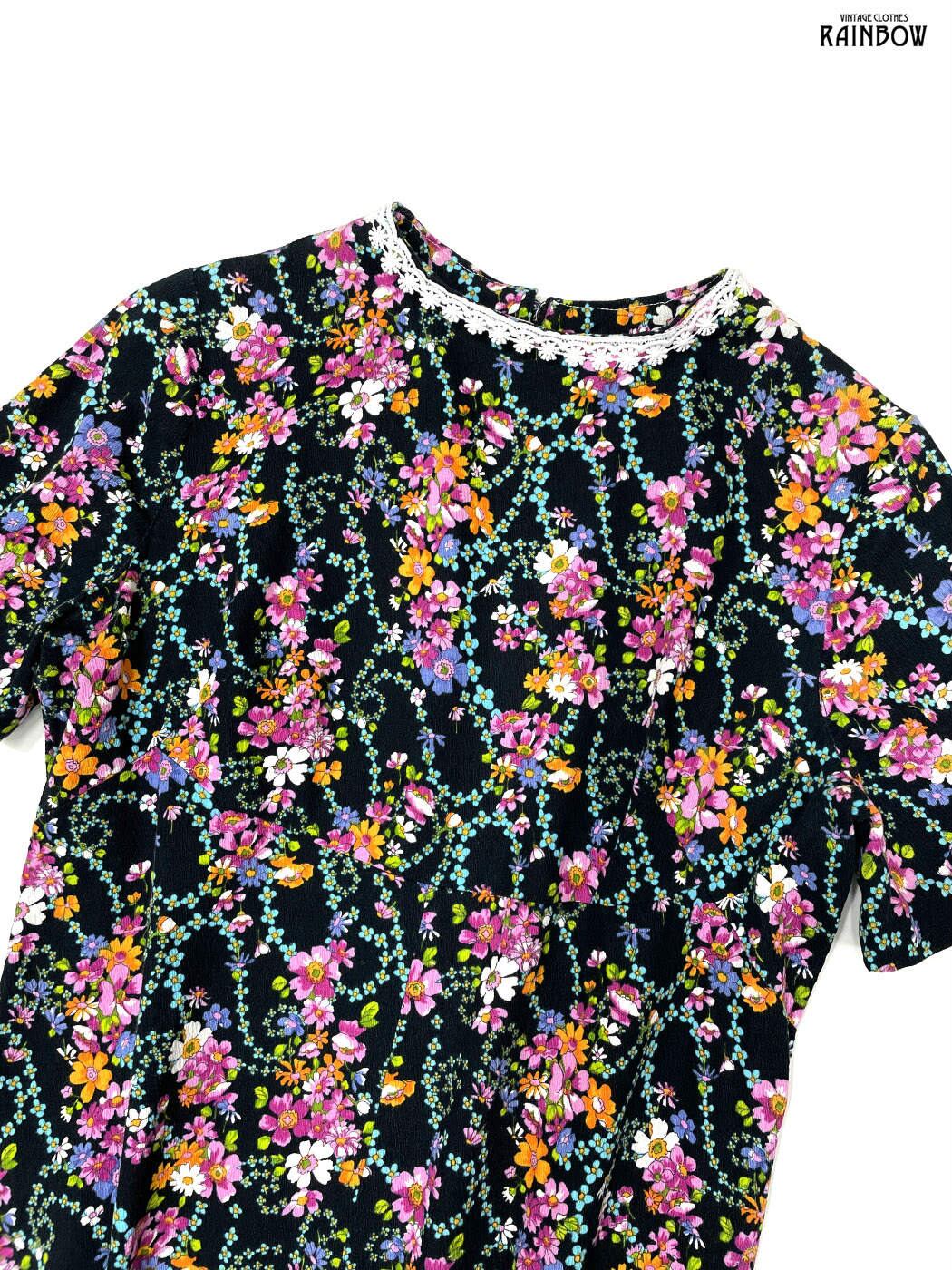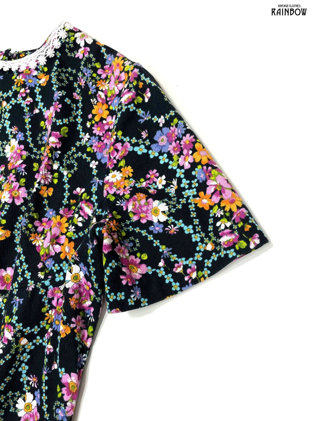 #ワンピース #ハーフスリーブ #ロング丈 #黒 #花柄 #レース #TALONジップ #クラシック #半袖花柄ワンピース