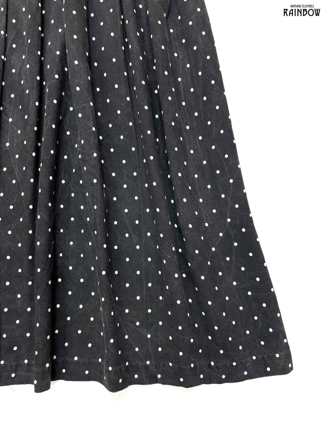 #ワンピース #ハーフスリーブ #ロング丈 #ウエスト切り替え #黒 #ドット柄 #アメリカ製 #レーヨン #半袖ドット柄ワンピース