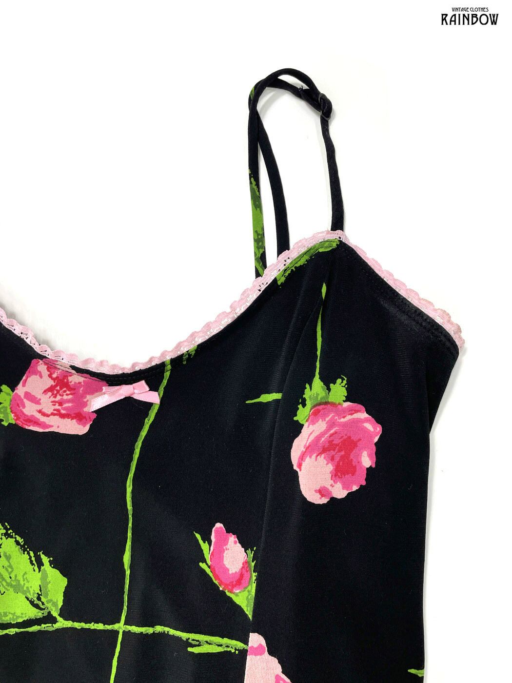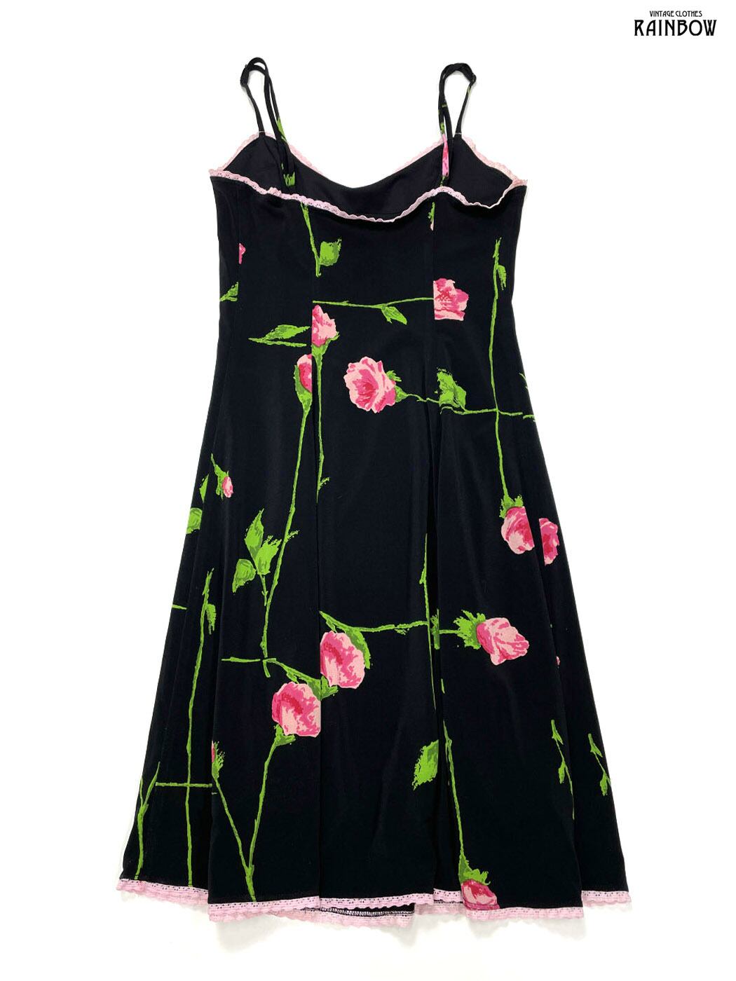 #ワンピース #キャミソール #ロング丈 #黒 #花柄 #リボン #クラシック #キャミソール花柄ワンピース