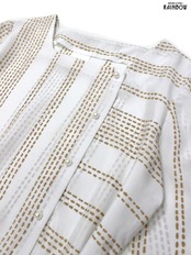 #ワンピース #ハーフスリーブ #ロング丈 #フレア #ウエスト切り替え #白 #ベージュ #総柄 #カナダ製 #リボン #ベルト付き #パールボタン #ガーリー #半袖総柄ワンピース