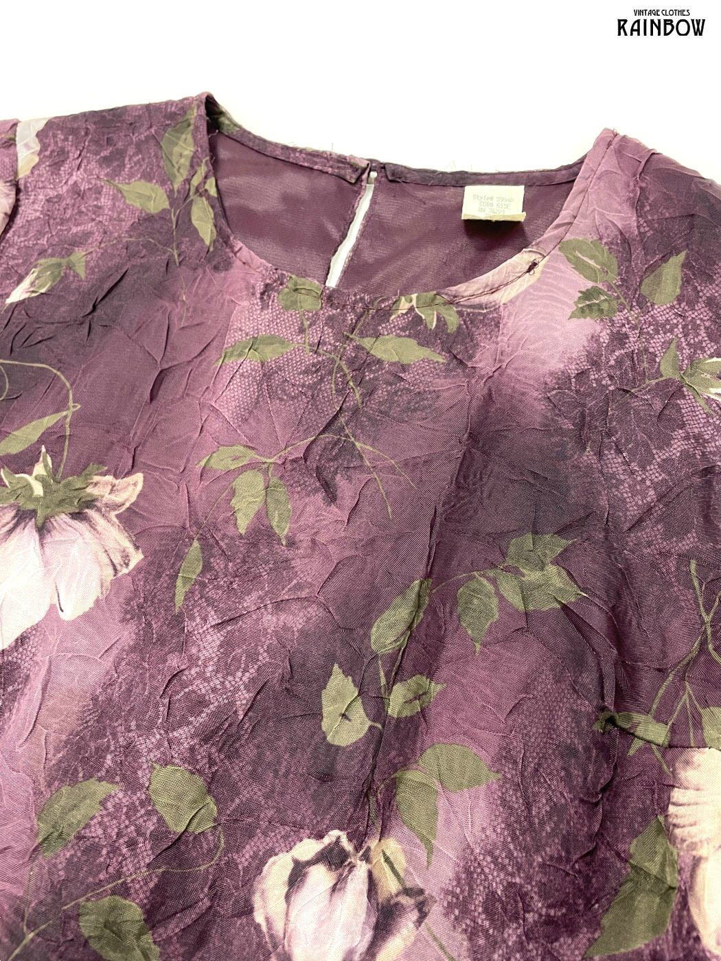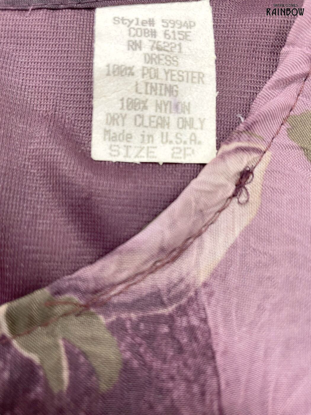 #ワンピース #ハーフスリーブ #膝丈 #紫 #花柄 #アメリカ製 #クラシック #シフォン #シフォンワンピース