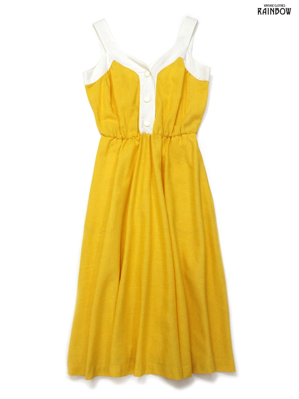 #ワンピース #キャミソール #ロング丈 #フレア #ゴムウエスト #ウエスト切り替え #黄 #無地 #アメリカ製 #ガーリー #レーヨン #キャミソール無地ワンピース