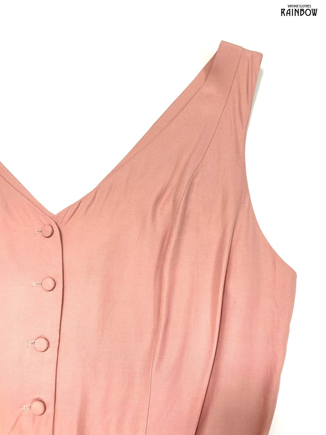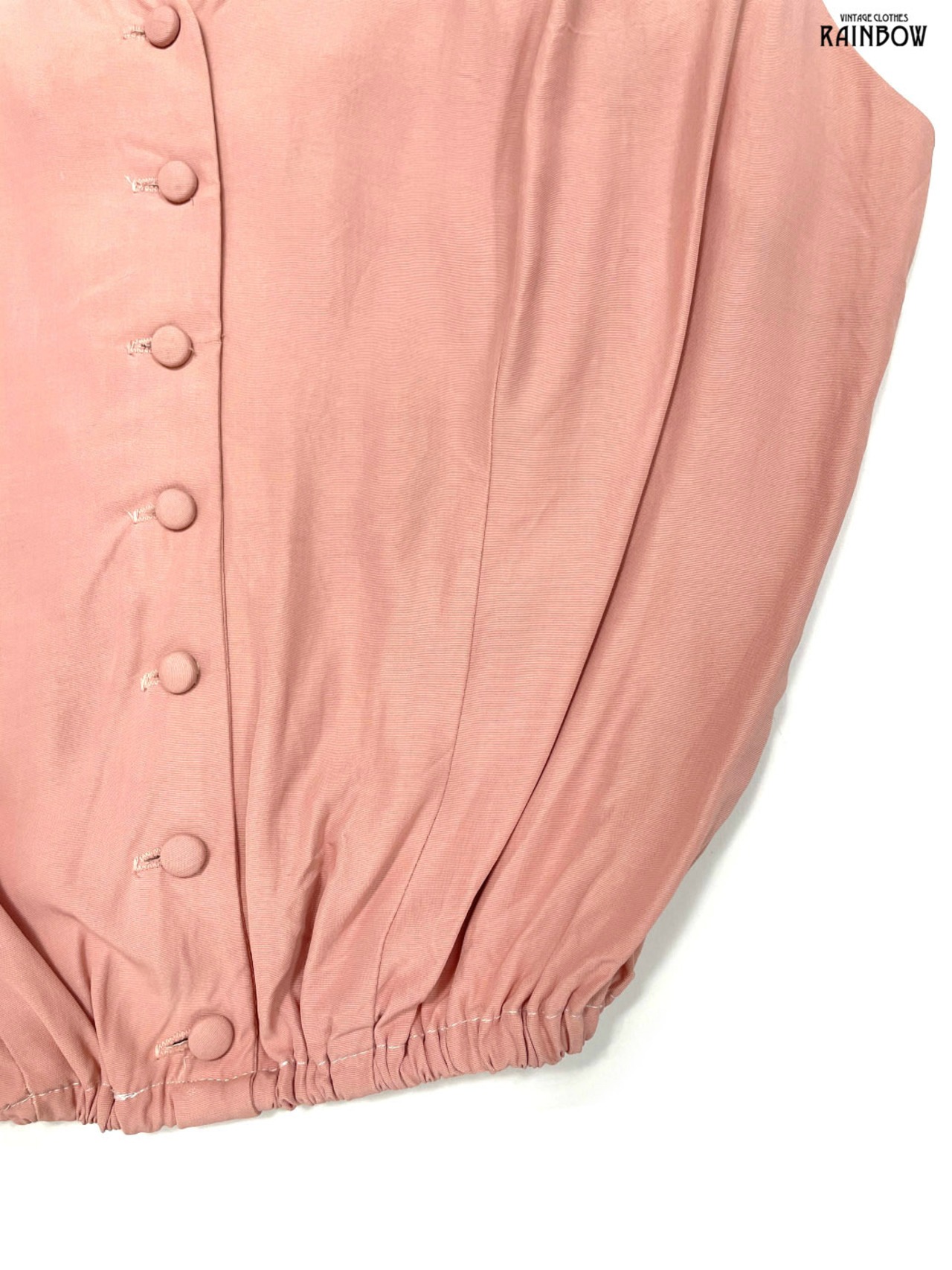 #ワンピース #セットアップ #ノースリーブ #膝丈 #フレア #ゴムウエスト #ピンク #無地 #前開き #ガーリー #レーヨン #セットアップ