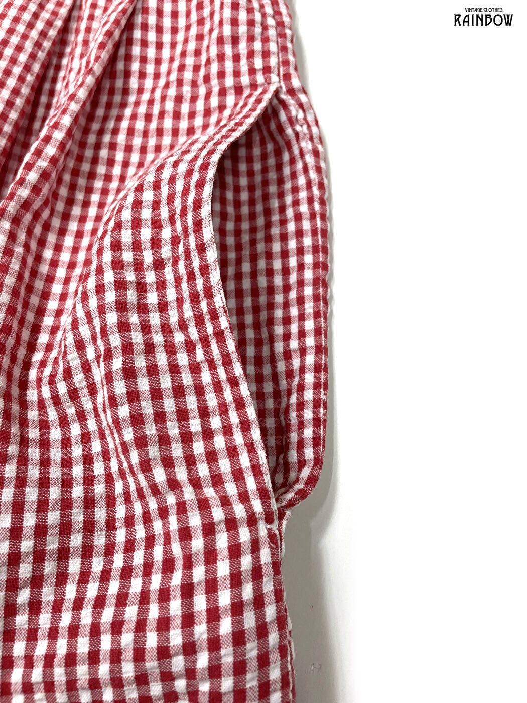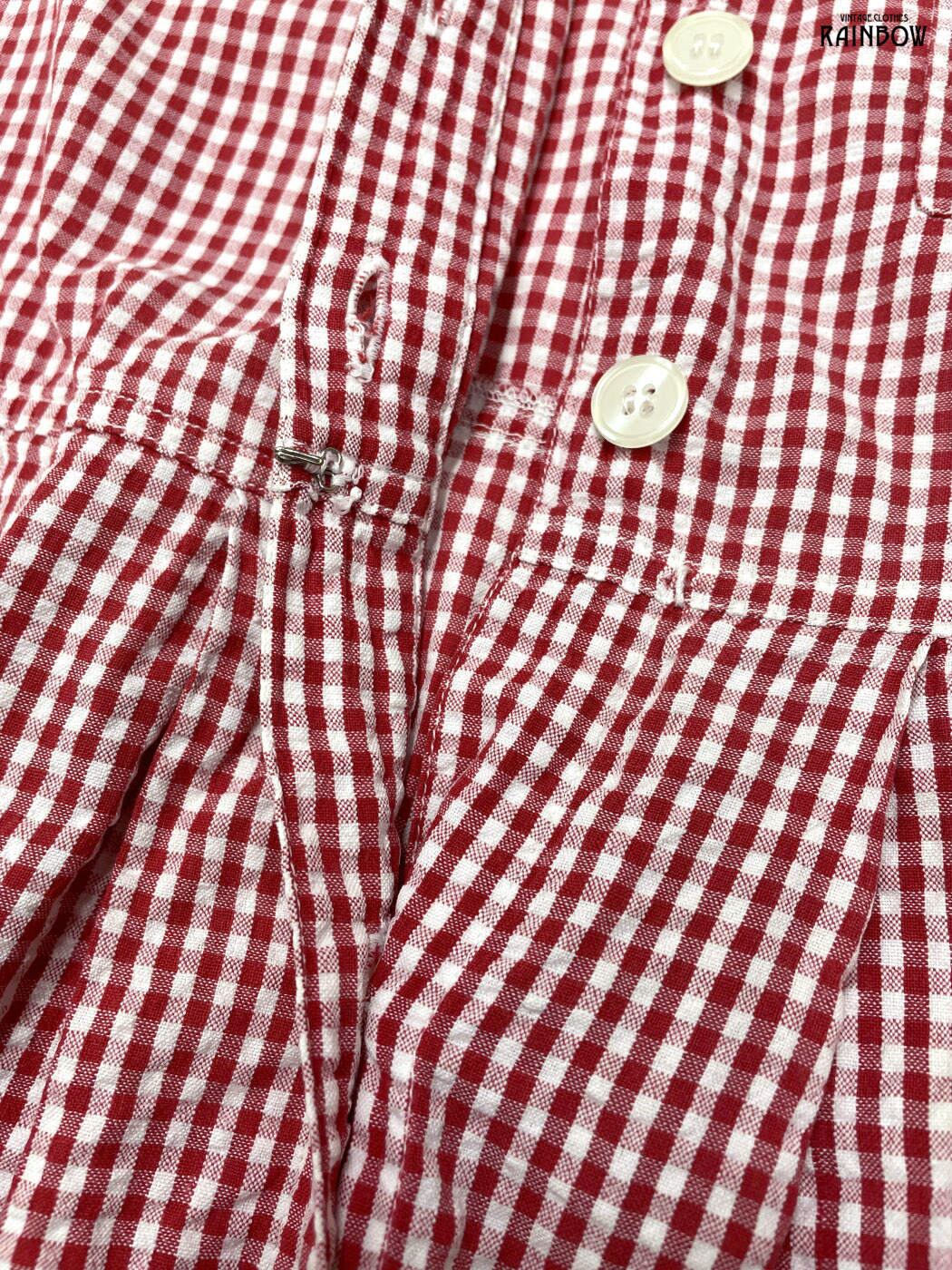 #ワンピース #ノースリーブ #膝丈 #フレア #ウエスト切り替え #赤 #チェック柄 #ギンガムチェック柄 #前開き #ガーリー #コットン #前開きシャツワンピース