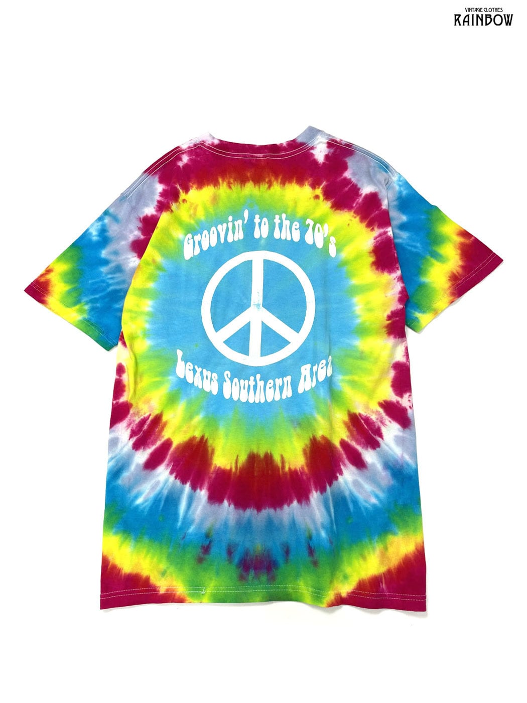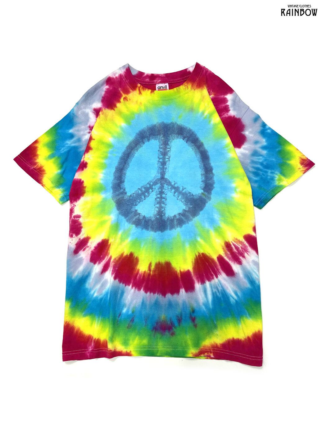 #トップス #Tシャツ #ハーフスリーブ #ピンク #カラフル #水色 #総柄 #バックプリント #タイダイ柄 #ピースマーク #アメリカ製 #ヴィンテージ #コットン #半袖柄Tシャツ